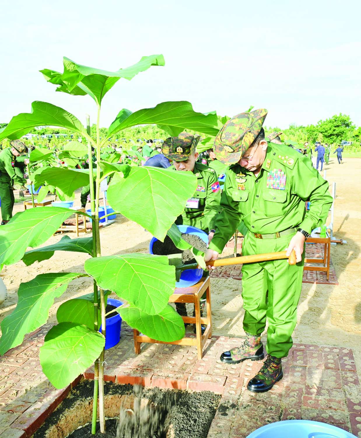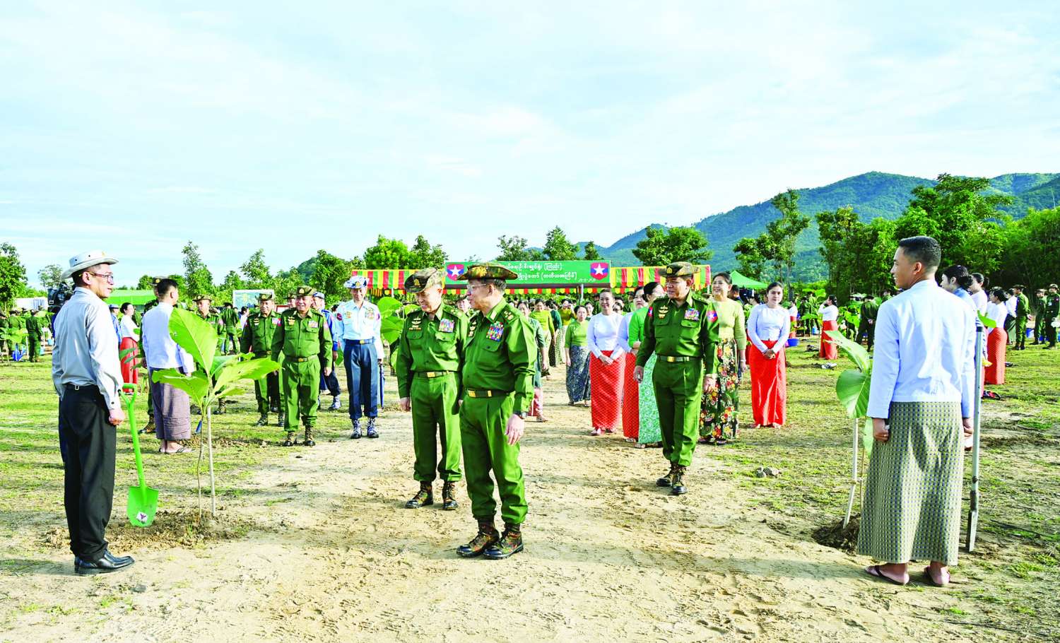 ထို့နောက် နိုင်ငံတော်စီမံအုပ်ချုပ်ရေးကောင်စီဥက္ကဋ္ဌ တပ်မတော်ကာကွယ်ရေးဦးစီးချုပ်နှင့် ဇနီးတို့သည် နိုင်ငံတော်စီမံအုပ်ချုပ်ရေးကောင်စီဒုတိယဥက္ကဋ္ဌ ဒုတိယတပ်မတော်ကာကွယ်ရေးဦးစီးချုပ် ကာကွယ်ရေးဦးစီးချုပ် (ကြည်း) နှင့်ဇနီး၊ ညှိနှိုင်းကွပ်ကဲရေးမှူး (ကြည်း၊ရေ၊လေ) နှင့်ဇနီး၊ ကာကွယ်ရေးဦးစီးချုပ်ရုံးမှ အဆင့်မြင့်တပ်မတော်အရာရှိကြီးများနှင့် ဇနီးများ၊ ပြည်ထောင်စုအဆင့်ပုဂ္ဂိုလ်များနှင့် ဇနီးများ၊ နိုင်ငံတော်ကာကွယ်ရေးတက္ကသိုလ်မှ သင်တန်းသားအရာရှိကြီးများ၊ အခမ်းအနား တက်ရောက်လာကြသည့် အရာရှိ၊ စစ်သည် မိသားစုများနှင့်အတူ သတ်မှတ်နေရာအသီးသီးတွင် သစ်ပင်များကို အတူတကွစုပေါင်းစိုက်ပျိုးကြသည်။