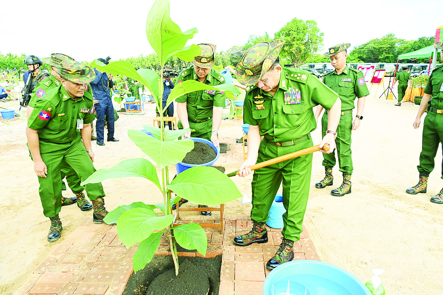 ထို့နောက် နိုင်ငံတော်စီမံအုပ်ချုပ်ရေးကောင်စီဥက္ကဋ္ဌ တပ်မတော်ကာကွယ်ရေးဦးစီးချုပ်နှင့်ဇနီး တို့က ရတနာတန်းဝင် ကျွန်းပင်ကို ဦးဆောင်စိုက်ပျိုးပေးကြသည်။ ဆက်လက်ပြီး နိုင်ငံတော်စီမံအုပ်ချုပ်ရေးကောင်စီဒုတိယဥက္ကဋ္ဌ ဒုတိယတပ်မတော်ကာကွယ်ရေးဦးစီးချုပ် ကာကွယ်ရေးဦးစီးချုပ်(ကြည်း)နှင့်ဇနီး၊ ညှိနှိုင်းကွပ်ကဲရေးမှူး(ကြည်း၊ ရေ၊ လေ) နှင့်ဇနီး၊ ကာကွယ်ရေးဦးစီးချုပ်(ရေ)နှင့်ဇနီး၊ ကာကွယ်ရေးဦးစီးချုပ်(လေ)နှင့်ဇနီး၊ ကာကွယ်ရေးဦးစီးချုပ်ရုံးမှ တပ်မတော်အရာရှိကြီးများနှင့်ဇနီးများ၊ အခမ်းအနားတက်ရောက်လာကြသည့် အရာရှိ၊ စစ်သည်မိသားစုများက သတ်မှတ်နေရာအသီးသီးတွင် သစ်ပင်များကို စိုက်ပျိုးကြသည်။ ထို့နောက် နိုင်ငံတော်စီမံအုပ်ချုပ်ရေးကောင်စီဥက္ကဋ္ဌ တပ်မတော်ကာကွယ်ရေးဦးစီးချုပ်နှင့်ဇနီး၊ အဖွဲ့ဝင်များသည် အရာရှိ၊ စစ်သည်မိသားစုများ၏ စုပေါင်းသစ်ပင်စိုက်ပျိုးနေမှုအား လှည့်လည် ကြည့်ရှု အားပေးကြသည်။