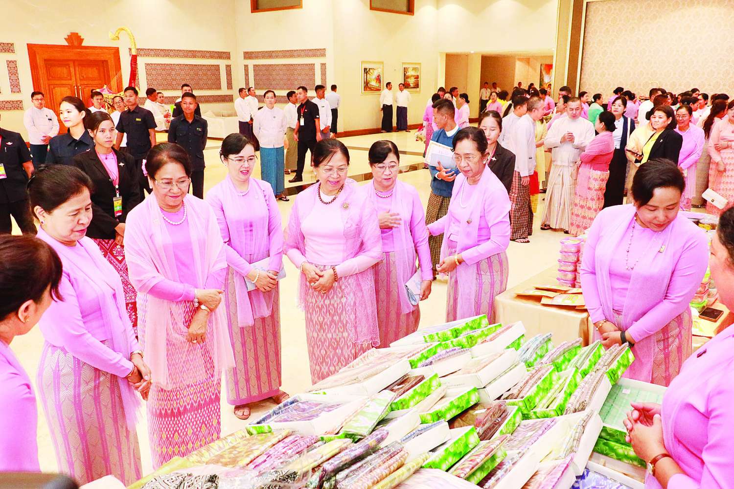 အမျိုးသမီးကော်မတီများ ဖွဲ့စည်းထားရှိရာတွင် ပြည်ထောင်စုအဆင့်မှာသာမက ပြည်ထောင်စုနယ်မြေ နေပြည်တော်အပါအဝင် တိုင်းဒေသကြီး/ ပြည်နယ် ၁၄ ခုနှင့် ခရိုင် ၁၃ ခုတို့တွင် မြန်မာနိုင်ငံ အမျိုးသမီးများနှင့် ကလေးသူငယ်များဘဝမြှင့်တင်ရေးအသင်းအနေဖြင့် အဖွဲ့ဝင်အဖြစ် ပါဝင်နေပါကြောင်း၊ အမျိုးသမီးများဖွံ့ဖြိုးတိုးတက်ရေးဆိုင်ရာ နိုင်ငံတော်အဆင့် မဟာဗျူဟာစီမံကိန်း - NSPAW (၂၀၂၃-၂၀၃၂) ကို ဦးဆောင်ကော်မတီ (၁) ရပ်နှင့် လုပ်ငန်းကော်မတီ (၁၂) ရပ်တို့ဖွဲ့စည်းကာ စီမံကိန်းကိုရေးဆွဲအကောင်အထည်ဖော်ဆောင်ရွက်လျက်ရှိပါကြောင်း၊ အသင်းအနေဖြင့် အမျိုးသမီးများအတွက် အသက်မွေးဝမ်းကျောင်းသင်တန်းများ၊ ကလေးသူငယ်များ၏ ပညာရေးနှင့် ဖွံ့ဖြိုးတိုးတက်ရေးလုပ်ငန်းများ၊ ယဉ်ကျေးလိမ္မာသင်တန်းများ၊ တိုက်ပွဲရှောင်နှင့် သဘာဝဘေးသင့် ပြည်သူများအတွက် လှူဒါန်းမှုများ၊ ကိုဗစ်-၁၉ ကာလအတွင်း ကျေးလက်နေအမျိုးသမီးဦးဆောင်အိမ်ထောင်စုများအတွက် သက်မွေးသင်တန်းများ၊ ကျန်းမာရေးစောင့်ရှောက်မှုနှင့် ကျေးလက်ဒေသဖွံ့ဖြိုးရေးလုပ်ငန်းများ ဆောင်ရွက်ပေးလျက်ရှိသည်ကို အစီရင်ခံစာများအရသိရှိရပါကြောင်း၊ အမျိုးသမီးများဖွံ့ဖြိုးတိုးတက်ရေးဆိုင်ရာ နိုင်ငံတော်အဆင့်မဟာဗျူဟာစီမံကိန်း (၂၀၂၃-၂၀၃၂) ၏ လုပ်ငန်းနယ်ပယ် (၁၂) ရပ်ကို အကောင်အထည်ဖော် ဆောင်ရွက်ရာတွင် မြန်မာနိုင်ငံလုံးဆိုင်ရာ အမျိုးသမီးကော်မတီ၏ ဦးဆောင်မှု၊ ဒေသအဆင့်ဆင့်တွင်ရှိသည့် အမျိုးသမီးကော်မတီ များအားလုံး၏ ပူးပေါင်းဆောင်ရွက်မှုနှင့်အတူ မြန်မာနိုင်ငံအမျိုးသမီးများနှင့် ကလေးသူငယ်များဘဝ မြှင့်တင်ရေးအသင်းအပါအဝင် အမျိုးသမီးအဖွဲ့အစည်းများအားလုံး၊ မိတ်ဖက်အဖွဲ့အစည်း များအားလုံးကလည်း မဟာဗျူဟာစီမံကိန်း ရည်မှန်းချက်များပြည့်မီအောင် ယခုထက်ပိုမိုပြီး တက်ညီလက်ညီ ဝိုင်းဝန်းပူးပေါင်း အကောင်အထည်ဖော်ဆောင်ရွက်ပေးရန် လိုအပ်ပါကြောင်း တိုက်တွန်းပြောကြားသည်။