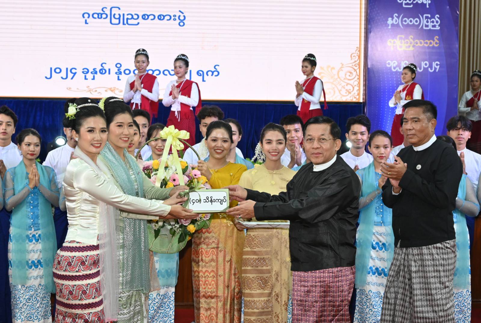 ထို့နောက် နိုင်ငံတော်စီမံအုပ်ချုပ်ရေးကောင်စီဥက္ကဋ္ဌ နိုင်ငံတော်ဝန်ကြီးချုပ်က သီဆိုကပြဖျော်ဖြေခဲ့ကြသည့် ကျောင်းသား၊ ကျောင်းသူများနှင့် အနုပညာရှင်များအား ဂုဏ်ပြုပန်းခြင်းနှင့် ဂုဏ်ပြုဆုငွေများ ပေးအပ်ပြီး ရင်းရင်းနှီးနှီး နှုတ်ဆက်ခဲ့ကြောင်း သတင်းရရှိသည်။