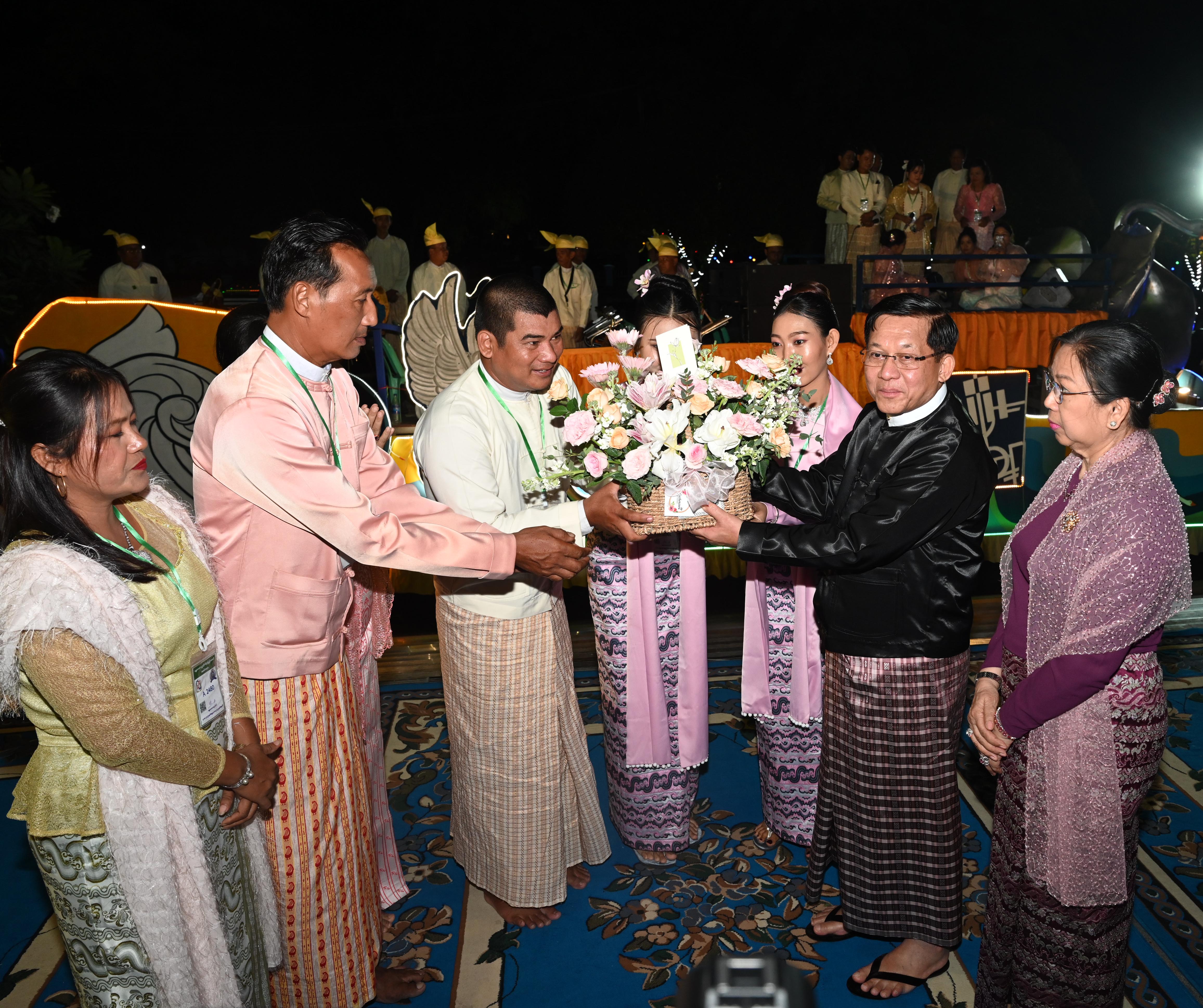 ယင်းနောက် နိုင်ငံတော်ယာယီသမ္မတ နိုင်ငံတော်လုံခြုံရေးနှင့်အေးချမ်းသာယာရေးကော်မရှင်ဥက္ကဋ္ဌ နှင့်ဇနီးနှင့် အဖွဲ့ဝင်များသည် မြို့မတေးဂီတအဖွဲ့၏ ဖျော်ဖြေတင်ဆက်မှုအား ကြည့်ရှုအားပေးကြပြီး သီဆိုတီးမှုတ်ဖျော်ဖြေခဲ့ကြသူများအား နိုင်ငံတော်ယာယီသမ္မတ နိုင်ငံတော်ခြုံရေးနှင့်အေးချမ်းသာယာရေးကော်မရှင်ဥက္ကဋ္ဌနှင့်ဇနီးတို့က ဂုဏ်ပြုပန်းခြင်းနှင့် ဂုဏ်ပြုချီးမြှင့်ငွေများ ပေးအပ်ခဲ့ကြောင်း သိရသည်။