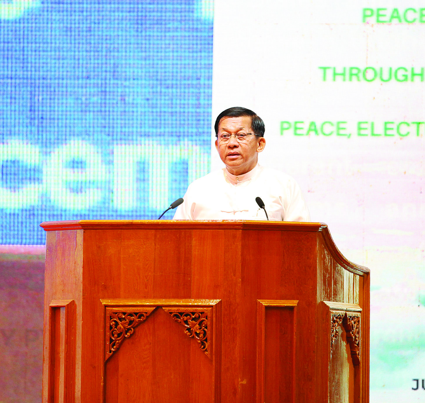 ကျွန်တော်တို့ ရည်မှန်းထားတဲ့ ပြည်ထောင်စုကြီးတည်ဆောက်နိုင်ဖို့ လုပ်ဆောင်ရာမှာ ပြည်တွင်းပဋိပက္ခချုပ်ငြိမ်းရေးနဲ့ ထာဝရငြိမ်းချမ်းရေးရရှိရေးဟာ အသက်တမျှ အရေးကြီးလှပါတယ်။ လက်နက်ကိုင်လမ်းစဉ်နဲ့ အကြမ်းဖက်လုပ်ရပ်တွေကြောင့် နိုင်ငံတော်မှာဖြစ်ပေါ်ခဲ့ရတဲ့ ဆုံးရှုံးနစ်နာမှုတွေကို ထောက်ရှုပြီး ထာဝရငြိမ်းချမ်းရေးနဲ့ ဖွံ့ဖြိုးတိုးတက်ရေးကို ပြည်သူတွေနဲ့အတူ လက်တွဲဖော်ဆောင်ကြဖို့ လိုအပ်ပါတယ်။ ဒါ့ကြောင့် နိုင်ငံတော်ကို ဆန့်ကျင်တိုက်ခိုက်နေတဲ့ တိုင်းရင်းသားလက်နက်ကိုင်အဖွဲ့အစည်းတွေ၊ အကြမ်းဖက်သောင်းကျန်းသူအဖွဲ့တွေ၊ အကြမ်းဖက် PDF အဖွဲ့တွေအနေနဲ့ လက်နက်ကိုင်အကြမ်းဖက်တိုက်ခိုက်တဲ့ လမ်းစဉ်ကိုစွန့်လွှတ်ပြီး ပါတီနိုင်ငံရေးလမ်းကြောင်းနဲ့ ရွေးကောက်ပွဲလမ်းကြောင်းတွေကတစ်ဆင့် နိုင်ငံရေးပြဿနာကို နိုင်ငံရေးနည်းလမ်းနဲ့ ဖြေရှင်းဆောင်ရွက်နိုင်ဖို့အတွက်လည်း အကြိမ်ကြိမ်ဖိတ်ခေါ်ကမ်းလှမ်းထားခဲ့ပါတယ်။ နိုင်ငံရေးနည်းလမ်းကို စားပွဲဝိုင်းပေါ်မှာ တွေ့ဆုံဆွေးနွေးခြင်းနဲ့သာ အဖြေရှာနိုင်မှာဖြစ်တာကြောင့် ငြိမ်းချမ်းရေးဆွေးနွေးမှုတွေကို အမြဲတမ်းကြိုဆိုလမ်းဖွင့်ထားပါကြောင်း ဒီဖိုရမ်ကနေထပ်ဆင့်အသိပေးပြောကြားလိုပါတယ်။