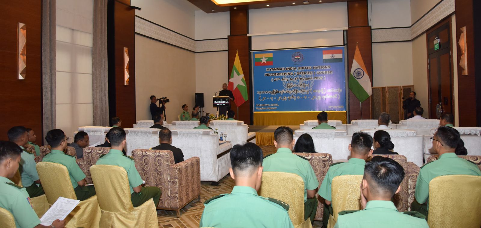 မြန်မာ့တပ်မတော်မှအရာရှိ၊ စစ်သည်များအနေဖြင့် ကုလသမဂ္ဂငြိမ်းချမ်းရေး ထိန်းသိမ်းစောင့်ရှောက်မှုဆိုင်ရာ လုပ်ငန်းတာဝန်များသိရှိနိုင်စေရန်အတွက် မြန်မာ့တပ်မတော်နှင့် အိန္ဒိယတပ်မတော်တို့ ပူးပေါင်းဖွင့်လှစ်သော ကုလသမဂ္ဂ ငြိမ်းချမ်းရေးထိန်းသိမ်းမှုဆိုင်ရာသင်တန်း UN Peacekeeping Officer Course ဖွင့်ပွဲအခမ်းအနားကို ယနေ့နံနက်ပိုင်းတွင် နေပြည်တော်ရှိ Park Royal ဟိုတယ်၌ ပြုလုပ်သည်။