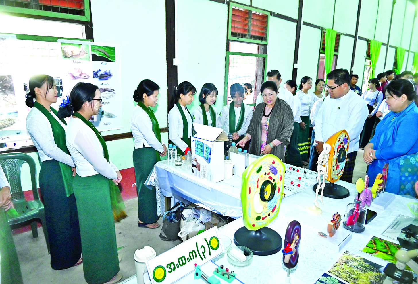 ထို့နောက် အခြေခံပညာအလယ်တန်းကျောင်း ကျောင်းသား ကျောင်းသူများက ကျောင်းတက်မယ် တေးသီချင်းသရုပ်ဖော်ဖြင့်လည်းကောင်း၊ ဇာတိမာန်သီချင်းဖြင့်လည်းကောင်း သီဆိုဖျော်ဖြေမှုကို ကြည့်ရှုအားပေးကြပြီး ခန်းမအတွင်းပြသထားသည့် သင်ထောက်ကူပစ္စည်းများနှင့် ပညာရေးစွမ်းရည်ပြခန်းငယ်များ၊ ဓာတ်ပုံပြခန်းများကို ကြည့်ရှု စစ်ဆေးကြသည်။