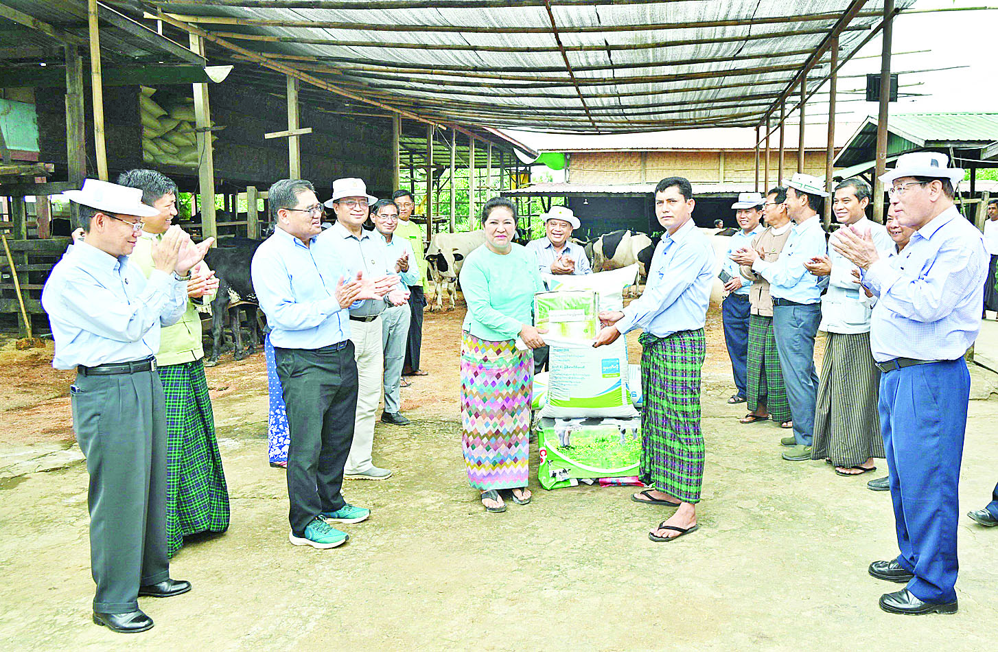 ထို့နောက် အဆိုပါ ခြံဝင်းအတွင်း ဆင်းဧကရီ - ၃ အထွက်တိုးမျိုးနှင့် ငွေတိုးစပါးစိုက်ခင်းများ ဖြစ်ထွန်းအောင်မြင်နေမှု၊ စပါးခင်းပတ်လည် ရေမြောင်းအတွင်း ငါးခူငါးမျိုးများ စိုက်ထည့်မွေးမြူထားရှိမှု၊ မန်ဒါလီဘဲ၊ ဘဲငန်းနှင့် ဒေသကြက်များ မွေးမြူထားရှိမှု၊ အသားတိုးဝက်ကောင်ရေ ၉၀ ကျော် စီးပွားဖြစ်မွေးမြူထားရှိမှုနှင့် ခြံဝင်းအတွင်း လိုင်ချီးသီးပင်ပေါက်များနှင့် ဂရိတ်ဖရုပျိုးပင်များ စိုက်ပျိုးထားမှုကို လှည့်လည်ကြည့်ရှုစစ်ဆေးပြီး မွေးမြူရေးအထောက်အကူပြု ဆေးဝါးများ၊ ခြံဖျန်းပိုးသတ်ဆေးဘူးများနှင့် ရောစပ် အစာနုအိတ်များကို ထောက်ပံ့ပေးအပ်သည်။