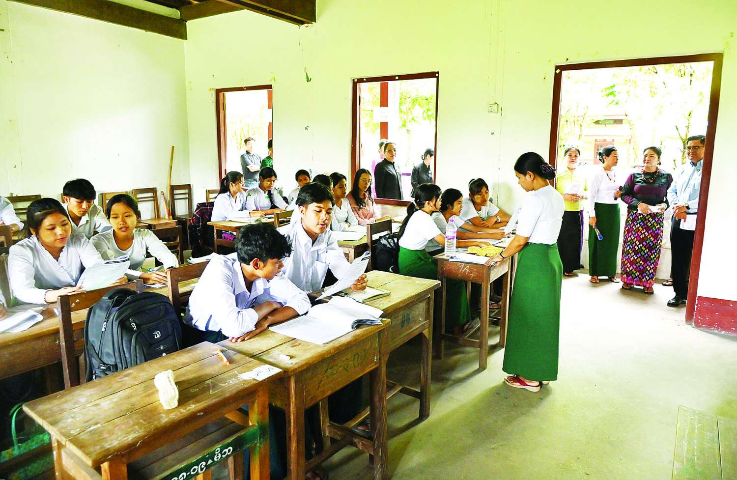 နိုင်ငံတော်စီမံအုပ်ချုပ်ရေးကောင်စီအဖွဲ့ဝင် ဒေါ်ဒွဲဘူသည် ကချင်ပြည်နယ် မြစ်ကြီးနားမြို့သို့ ယနေ့နံနက်ပိုင်းတွင်ရောက်ရှိပြီး မြစ်ကြီးနားမြို့ရှိ အခြေခံပညာအထက်တန်းကျောင်းများ၌ တက္ကသိုလ်ဝင်စာမေးပွဲ ပြန်လည်ကျင်းပပြုလုပ်နိုင်ရး Grade-12 ကျောင်းသား ကျောင်းသူများအား ဘာသာရပ်အလိုက် စခန်းသွင်းလေ့ကျင့်သင်ကြားနေမှုများကို လှည့်လည်ကြည့်ရှုစစ်ဆေးသည်။