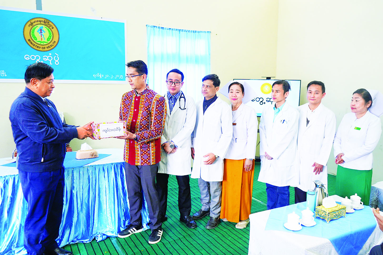 ယင်းနောက် ကျန်းမာရေးဝန်ထမ်းများနှင့်တွေ့ဆုံပွဲသို့ တက်ရောက်ရာ ပြည်နယ်ကျန်းမာရေးဦးစီးဌာနမှူးက ဆေးရုံဆိုင်ရာအချက်အလက်များနှင့် ဆေးရုံတက်ရောက်ကုသလျက်ရှိသော လူနာအခြေအနေတို့ကို ရှင်းလင်းတင်ပြပြီး ကျန်းမာရေးဝန်ကြီးဌာန ပြည်ထောင်စုဝန်ကြီး ပါမောက္ခ ဒေါက်တာ သက်ခိုင်ဝင်းက ဖြည့်စွက်ဆွေးနွေးသည်။