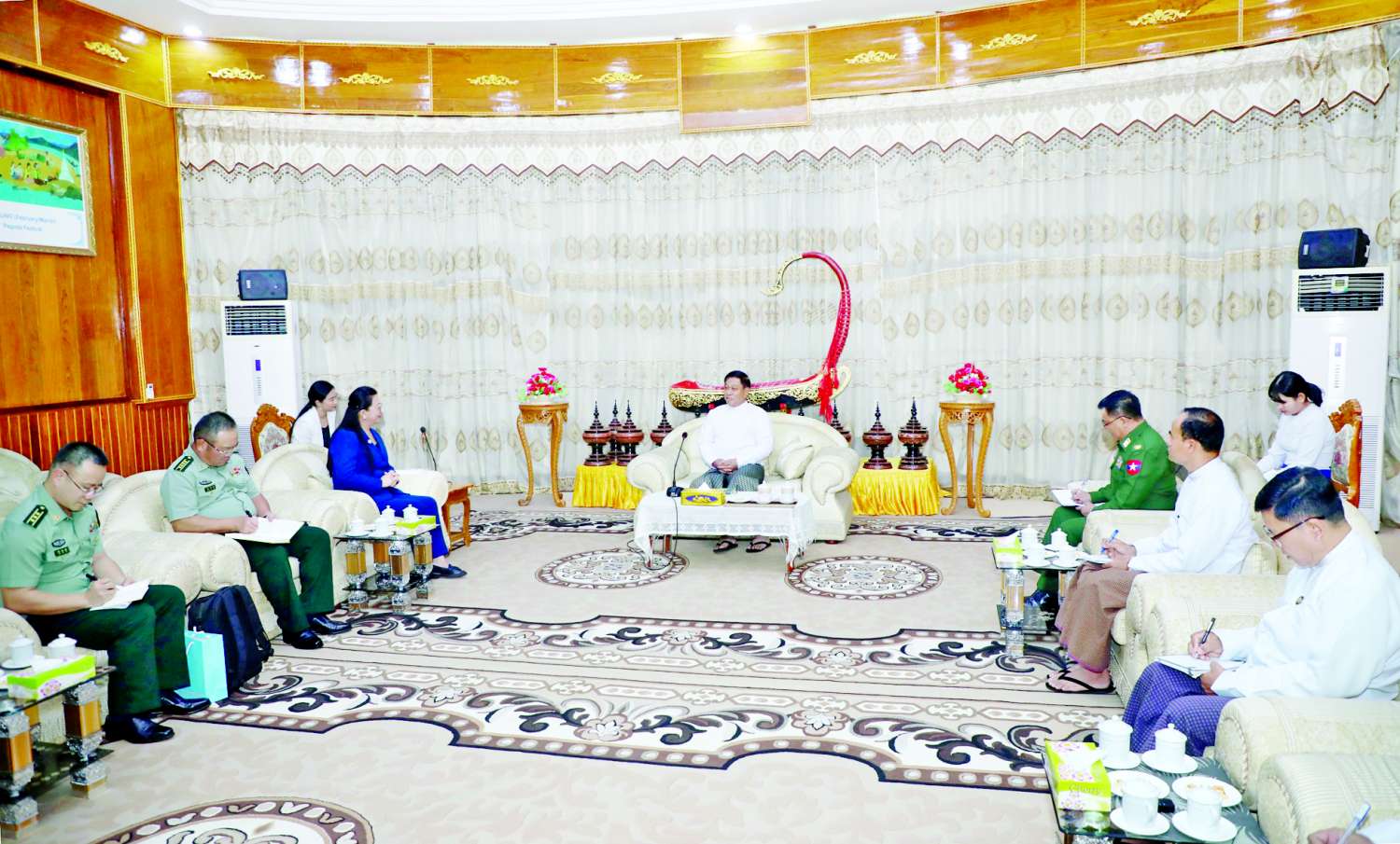 နိုင်ငံတော်စီမံအုပ်ချုပ်ရေးကောင်စီအဖွဲ့ဝင် ဒုတိယဝန်ကြီးချုပ်နှင့် ပြည်ထောင်စုဝန်ကြီး ဗိုလ်ချုပ်ကြီး တင်အောင်စန်း မြန်မာနိုင်ငံဆိုင်ရာ တရုတ်ပြည်သူ့သမ္မတနိုင်ငံ သံအမတ်ကြီး မစ္စမာကျားကို လက်ခံတွေ့ဆုံ
