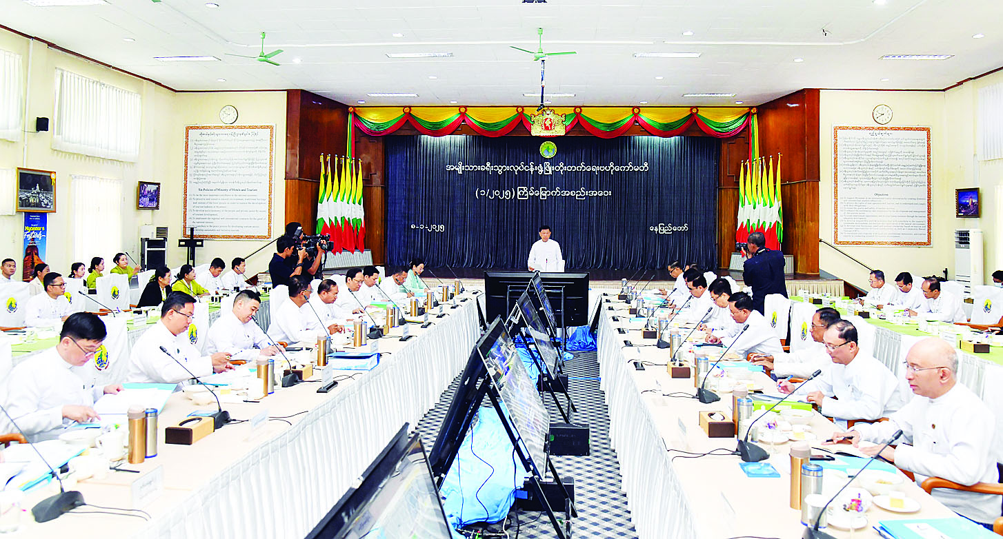 ဦးစွာ အမျိုးသားခရီးသွားလုပ်ငန်းဖွံ့ဖြိုးတိုးတက်ရေးဗဟိုကော်မတီဥက္ကဋ္ဌ နိုင်ငံတော်စီမံအုပ်ချုပ်ရေးကောင်စီအဖွဲ့ဝင် ဒုတိယဝန်ကြီးချုပ်နှင့် ပြည်ထောင်စုဝန်ကြီး ဗိုလ်ချုပ်ကြီး မြထွန်းဦးက ယနေ့အစည်းအဝေးကို (၁/၂၀၂၄) ကြိမ်မြောက် ဗဟိုကော်မတီအစည်းအဝေးမှ ထွက်ပေါ်လာသည့် ဆွေးနွေးတင်ပြချက်များ၊ ဆုံးဖြတ်ချက်များအပေါ် အကောင်အထည်ဖော်ဆောင်ရွက်ခဲ့မှု အခြေအနေများကို သိရှိသုံးသပ်နိုင်ရန်နှင့် ခရီးသွားရာသီကာလတွင် နိုင်ငံတကာခရီးသွား ဧည့်သည်များ ပိုမိုရောက်ရှိရေး၊ ဝန်ကြီးဌာနနှင့်အတူ တိုင်းဒေသကြီးနှင့် ပြည်နယ်အစိုးရများမှ ဆောင်ရွက်ရမည့် လုပ်ငန်းစဉ်များကို အရှိန်မြှင့်ဆောင်ရွက်နိုင်ရေး ဆွေးနွေးအဖြေရှာရန် ကျင်းပခြင်းဖြစ်ကြောင်း။