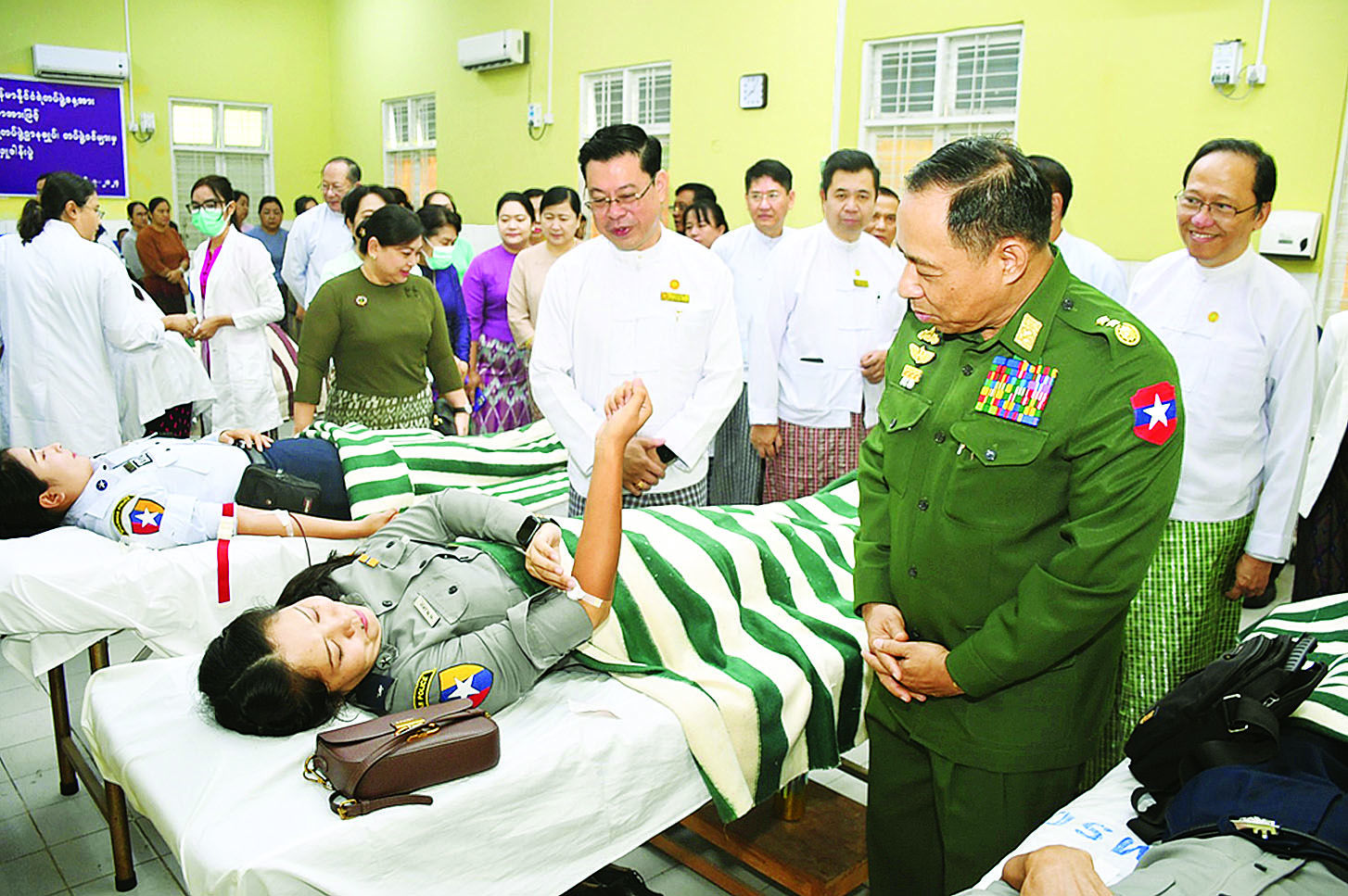 နိုင်ငံတော်စီမံအုပ်ချုပ်ရေးကောင်စီအဖွဲ့ဝင် ပြည်ထောင်စုဝန်ကြီး ဒုတိယဗိုလ်ချုပ်ကြီးရာပြည့် နှစ်(၆၀)ပြည့် မြန်မာနိုင်ငံရဲတပ်ဖွဲ့နေ့ကို ကြိုဆိုဂုဏ်ပြုသောအားဖြင့် စုပေါင်းသွေးလှူဒါန်းပွဲနှင့် ဆေးရုံသုံးပစ္စည်းများနှင့် ဆေးဝါးများပေးအပ်လှူဒါန်းပွဲသို့ တက်ရောက်