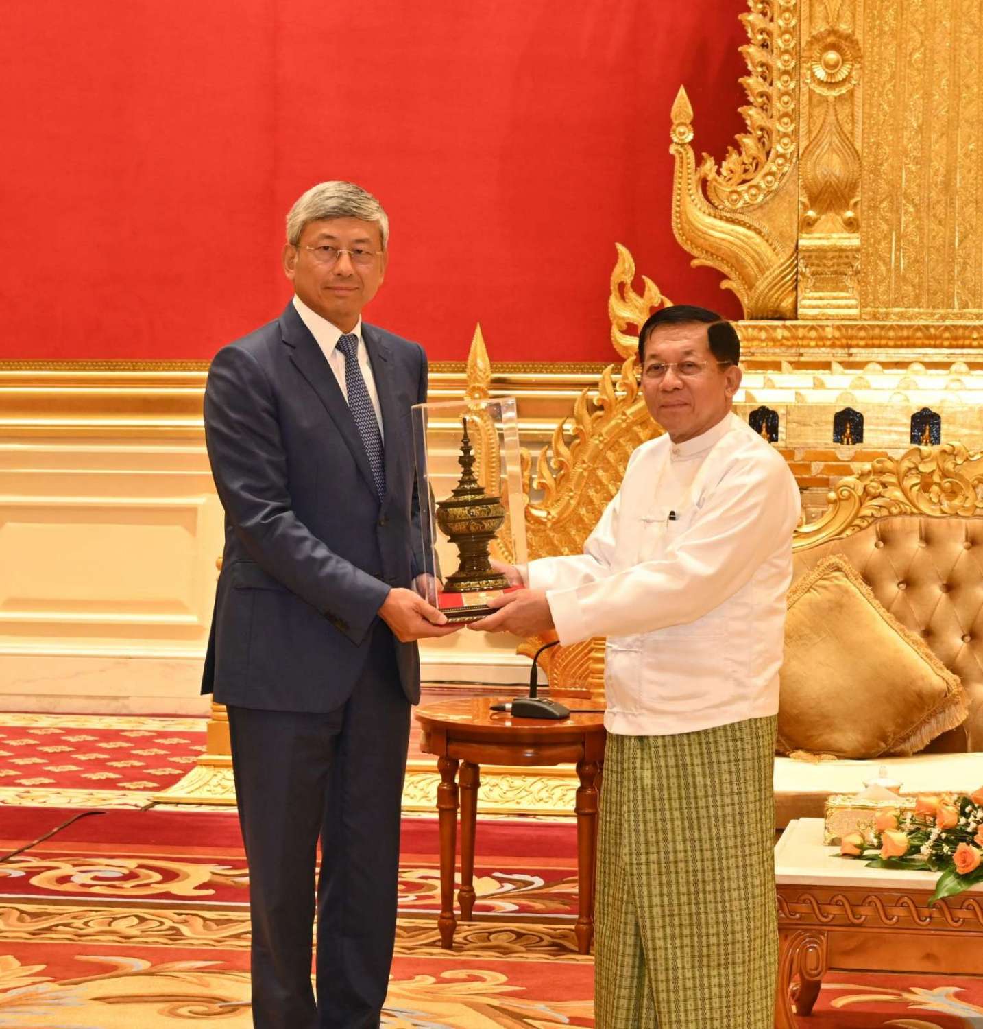 နိုင်ငံတော်စီမံအုပ်ချုပ်ရေးကောင်စီဥက္ကဋ္ဌ နိုင်ငံတော်ဝန်ကြီးချုပ် ဗိုလ်ချုပ်မှူးကြီး မင်းအောင်လှိုင် မြန်မာနိုင်ငံဆိုင်ရာ တရုတ်ပြည်သူ့သမ္မတနိုင်ငံ သံအမတ်ကြီးအား လက်ခံတွေ့ဆုံ