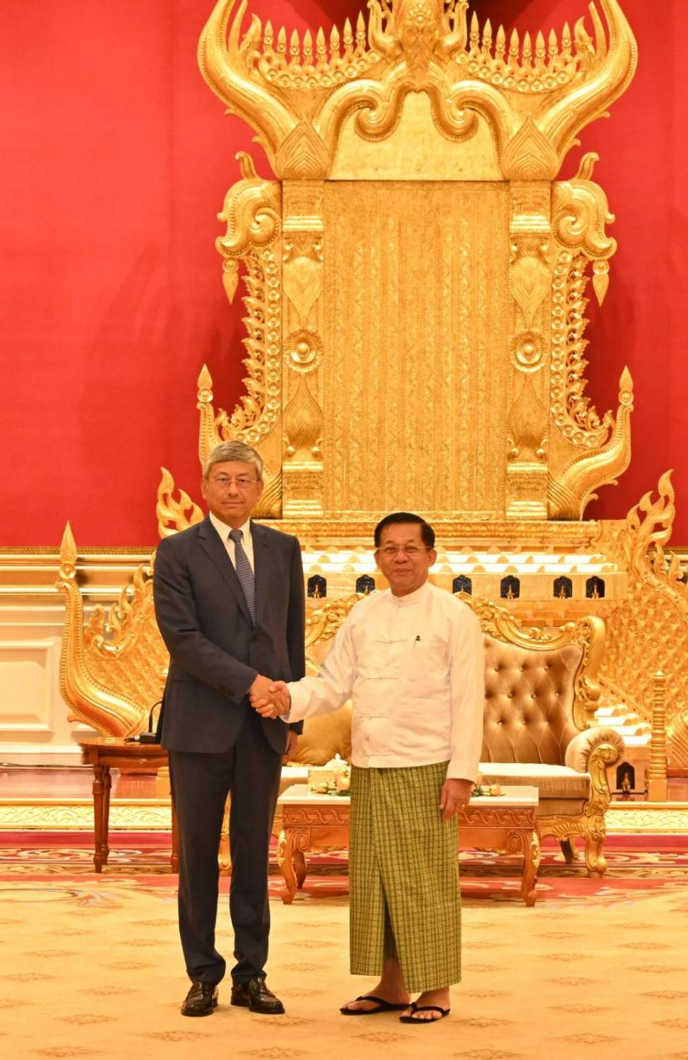 နိုင်ငံတော်စီမံအုပ်ချုပ်ရေးကောင်စီဥက္ကဋ္ဌ နိုင်ငံတော်ဝန်ကြီးချုပ် ဗိုလ်ချုပ်မှူးကြီး မင်းအောင်လှိုင်သည် တာဝန်ပြီးဆုံး၍ ပြန်လည်ထွက်ခွာမည့် မြန်မာနိုင်ငံဆိုင်ရာ တရုတ်ပြည်သူ့သမ္မတနိုင်ငံ သံအမတ်ကြီး H.E. Mr. Chen Hai အား ယနေ့နံနက်ပိုင်းတွင် နေပြည်တော်ရှိ နိုင်ငံတော်စီမံအုပ်ချုပ်ရေးကောင်စီဥက္ကဋ္ဌရုံး၊ သံတမန်ဆောင်ဧည့်ခန်းမ၌ လက်ခံတွေ့ဆုံသည်။