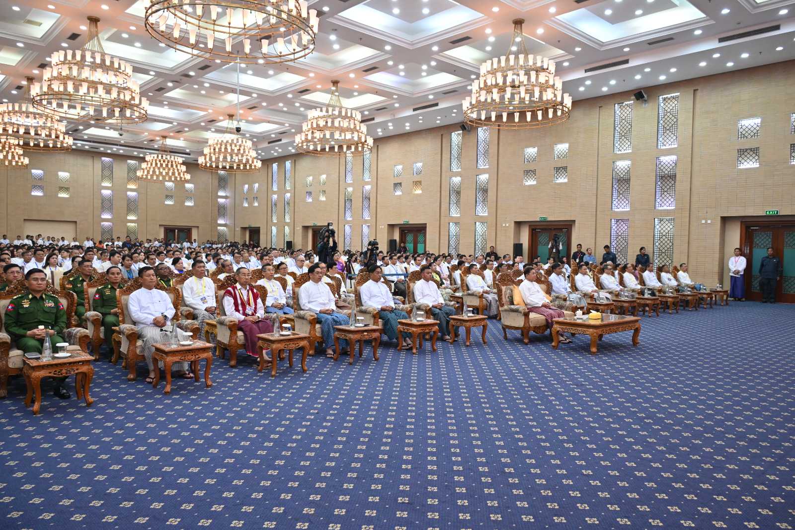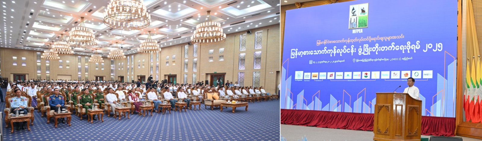 မြန်မာ့စားသောက်ကုန်လုပ်ငန်းဖွံ့ဖြိုးတိုးတက်ရေးဖိုရမ် (၂၀၂၅) ဖွင့်ပွဲ အခမ်းအနားကို ယနေ့နံနက်ပိုင်းတွင် နေပြည်တော်ရှိ မြန်မာအပြည်ပြည်ဆိုင်ရာကွန်ဗင်းရှင်း ဗဟိုဌာန - ၂ ၌ ကျင်းပရာ နိုင်ငံတော်စီမံအုပ်ချုပ်ရေးကောင်စီဥက္ကဋ္ဌ နိုင်ငံတော်ဝန်ကြီးချုပ် ဗိုလ်ချုပ်မှူးကြီး မင်းအောင်လှိုင် တက်ရောက်အမှာစကား ပြောကြား သည်။