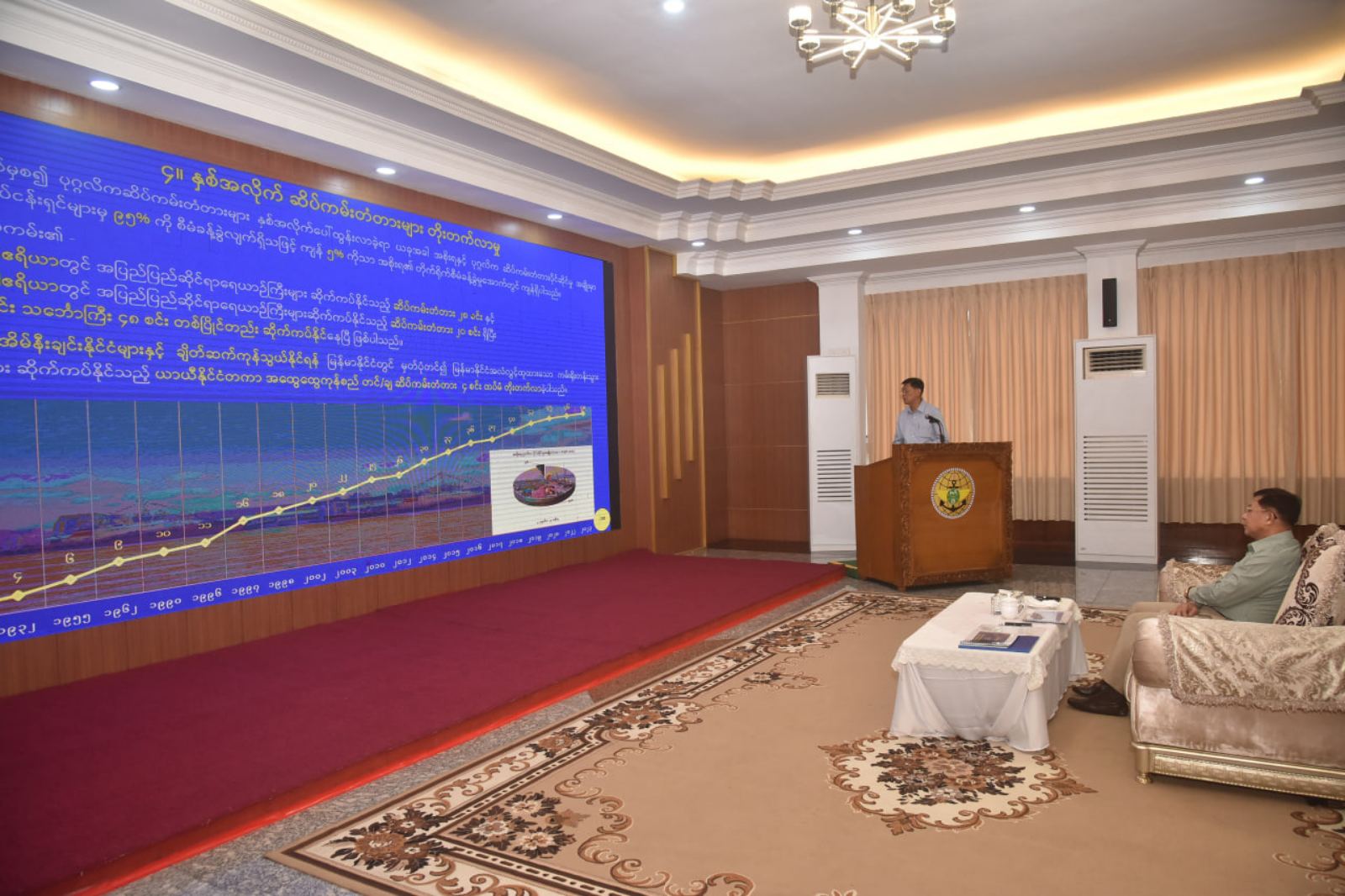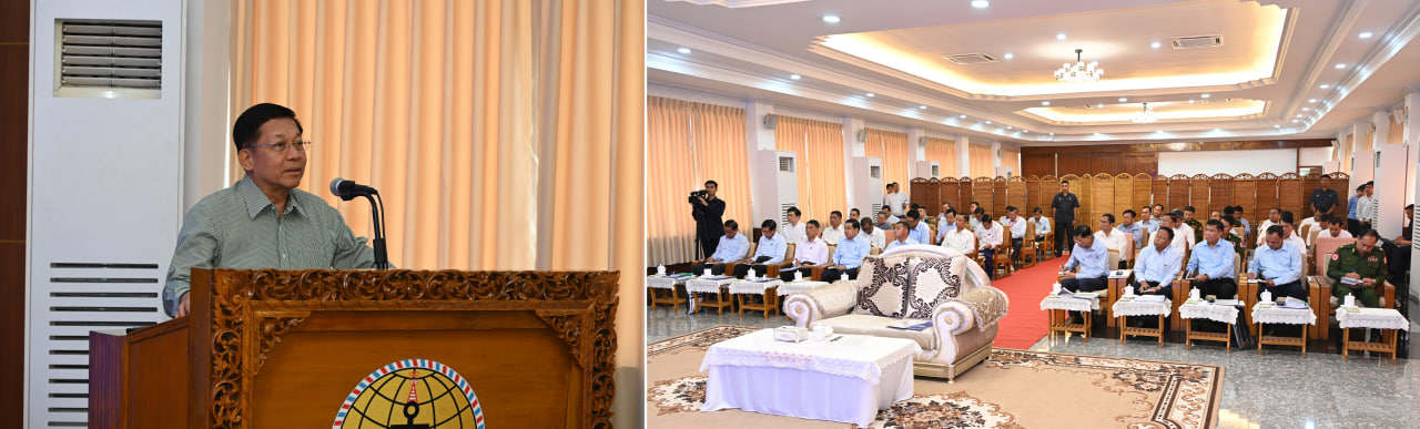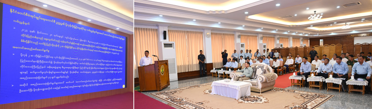 ဦးစွာ နိုင်ငံတော်စီမံအုပ်ချုပ်ရေးကောင်စီဥက္ကဋ္ဌ နိုင်ငံတော်ဝန်ကြီးချုပ်နှင့် အဖွဲ့ဝင်များသည် Asia World Port Terminal-AWPT ဆိပ်ကမ်းတံတားရှိ ၃ ထပ်ဆောင်ခန်းမသို့ ရောက်ရှိကြရာ တာဝန်ရှိသူများက ကြိုဆိုနှုတ်ဆက်ကြသည်။ ထို့နောက် ပို့ဆောင်ရေးနှင့်ဆက်သွယ်ရေးဝန်ကြီးဌာန ပြည်ထောင်စုဝန်ကြီး ဗိုလ်ချုပ်ကြီး မြထွန်းဦး ဆိပ်ကမ်းလုပ်ငန်းကဏ္ဍ စွမ်းဆောင်နိုင်မှုအခြေအနေများနှင့် ပတ်သက်၍ ဆိပ်ကမ်းလုပ်ငန်းကဏ္ဍ နောက်ခံသမိုင်းအကျဉ်း၊ မူဝါဒများ၊ မြန်မာ့ဆိပ်ကမ်းများ၊ နှစ်အလိုက် ဆိပ်ကမ်းတံတားများ တိုးတက်လာမှု၊ ရန်ကုန်ဆိပ်ကမ်းနှင့် သီလဝါဆိပ်ကမ်းဧရိယာတို့ရှိ ဆိပ်ကမ်းတံတားများ၊ ဆိပ်ကမ်းလုပ်ငန်းဆောင်ရွက်မှုနှင့် တိုးတက်မှု အခြေအနေအကျဉ်းချုပ်၊ ပြည်ပသို့ ပင်လယ်ရေကြောင်းမှလယ်ယာထွက်ကုန်များ တိုးမြှင့်တင်ပို့ခြင်း၊ ရန်ကုန်-ကော့သောင်း-ရနောင်းခရီးစဉ်ဖြင့် သွင်းကုန်/ပို့ကုန်ဆောင်ရွက်နိုင်မှု၊ Transshipment ဖြင့် ကုန်သွယ်မှုကို မြှင့်တင်ခြင်း၊ ဘဏ္ဍာငွေရှာဖွေနိုင်မှုနှင့်သုံးစွဲမှုအခြေအနေများ၊ လုပ်ငန်းဆောင်ရွက်မှုအပေါ် သုံးသပ်တင်ပြချက်များကို လည်းကောင်း၊ စီးပွားရေးနှင့်ကူးသန်း ရောင်းဝယ်ရေးဝန်ကြီးဌာန ပြည်ထောင်စုဝန်ကြီး ဦးထွန်းအုံ က ကုန်သွယ်မှုဆိုင်ရာအခြေအနေများနှင့်ပတ်သက်၍ နိုင်ငံတော်စီမံအုပ်ချုပ်ရေးကောင်စီ၏ ရှေ့လုပ်ငန်းစဉ် ၅ ရပ်၊ စီးပွားရေး ဦးတည်ချက် ၃ ရပ် တို့နှင့်အညီ ဆောင်ရွက်လျက်ရှိမှု၊ နိုင်ငံတော်စီမံအုပ်ချုပ်ရေးကောင်စီဥက္ကဋ္ဌ နိုင်ငံတော်ဝန်ကြီးချုပ်၏ ပို့ကုန်မြှင့်တင်ရေးဆိုင်ရာလမ်းညွှန်ချက်များနှင့် အကောင်အထည် ဖော် ဆောင်ရွက်မှုများ၊ ၂၀၁၁-၂၀၁၂ ဘဏ္ဍာရေးနှစ်မှ ၂၀၂၄-၂၀၂၅ ဘဏ္ဍာရေးနှစ်၊ မတ်လအထိ ကုန်သွယ်မှုအခြေအနေများ၊ ၂၀၂၄-၂၀၂၅ ဘဏ္ဍာရေးနှစ် လအလိုက်ကုန်သွယ်မှု အခြေအနေများ၊ ၂၀၁၁-၂၀၁၂ ဘဏ္ဍာရေးနှစ်မှ ၂၀၂၄-၂၀၂၅ ဘဏ္ဍာရေးနှစ်၊ မတ်လ ၁၂ ရက်အထိ ပို့ကုန်ဆိုင်ရာ ကုန်ပစ္စည်းအုပ်စုအလိုက် အမှန်တင်ပို့နိုင်မှု၊ ၂၀၂၄-၂၀၂၅ ဘဏ္ဍာရေးနှစ်၊ မတ်လ ၁၂ ရက်အထိနှင့် ယခင်နှစ်အလားတူကာလ ပို့ကုန်အုပ်စုအလိုက် နှိုင်းယှဉ်ချက်၊ ပို့ကုန်အများဆုံးတင်ပို့ခဲ့သည့် ကုန်ပစ္စည်းများနှင့်နိုင်ငံများ၊ ဆန်/ဆန်ကွဲ၊ ပဲမျိုးစုံ၊ ပြောင်း၊ နှမ်းနှင့် ဝါဂွမ်းတင်ပို့မှု၊ ၂၀၂၄-၂၀၂၅ ဘဏ္ဍာရေးနှစ်၊ မတ်လ ၁၂ ရက်အထိ အုပ်စုအလိုက် သွင်းကုန် ဆောင်ရွက်မှုနှင့် ဘဏ္ဍာရေးနှစ်အလိုက် သွင်းကုန်အများဆုံး တင်သွင်းခဲ့ရသည့်ကုန်ပစ္စည်းများကိုလည်းကောင်း အသီးသီး ရှင်းလင်းတင်ပြကြသည်။