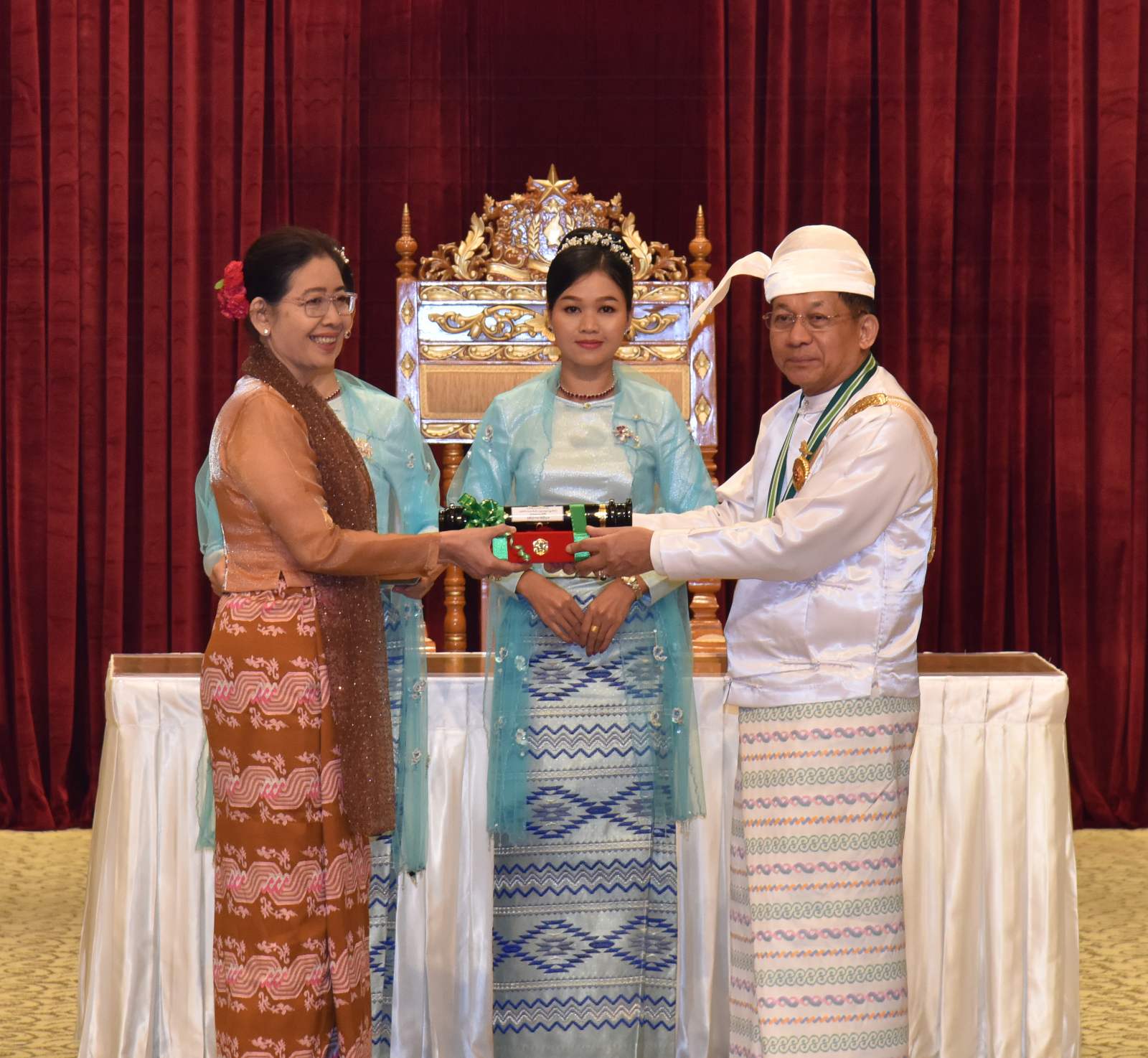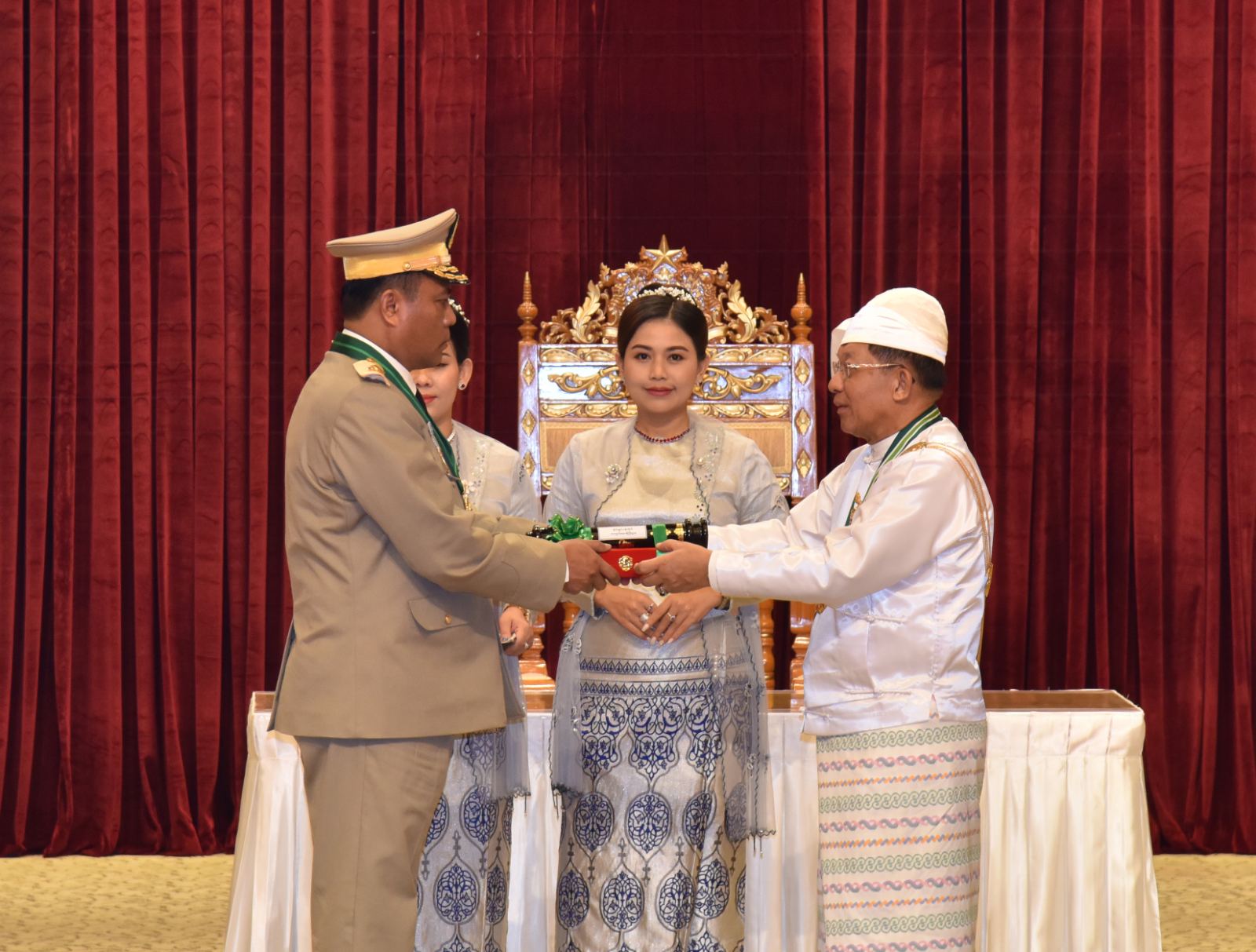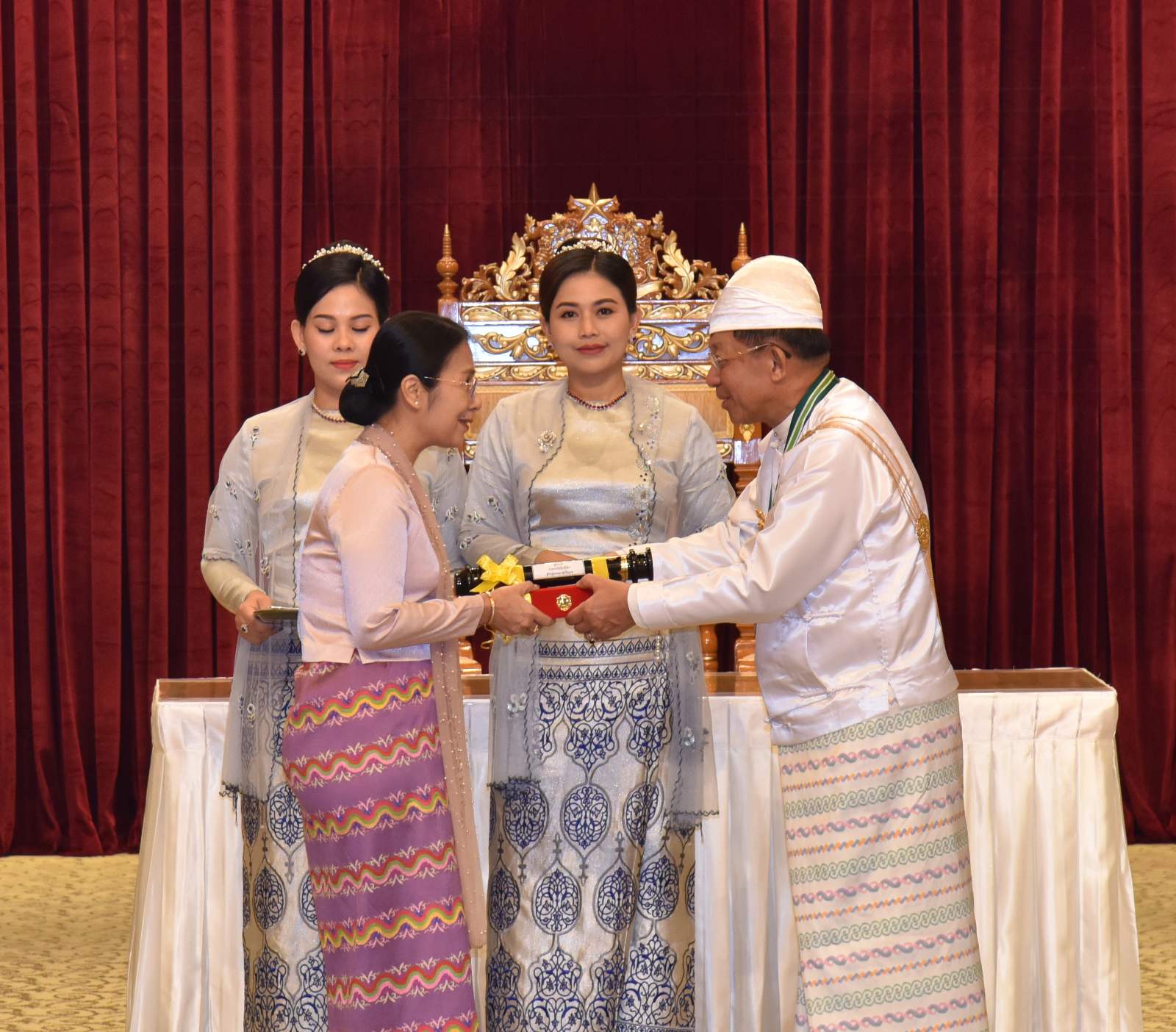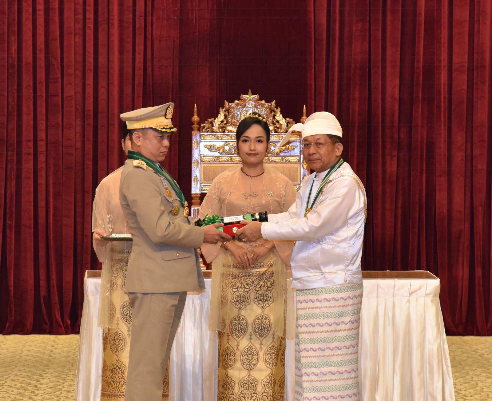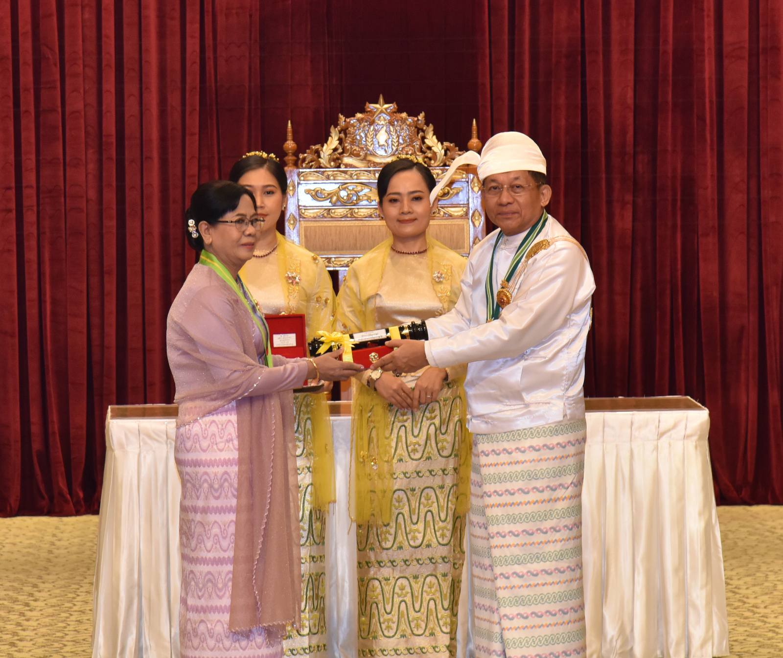 အဆိုပါအခမ်းအနားသို့ နိုင်ငံတော်စီမံအုပ်ချုပ်ရေးကောင်စီဥက္ကဋ္ဌ နိုင်ငံတော်ဝန်ကြီးချုပ်၏ဇနီး ဒေါ်ကြူကြူလှ၊ နိုင်ငံတော်စီမံအုပ်ချုပ်ရေးကောင်စီ ဒုတိယဥက္ကဋ္ဌ ဒုတိယဝန်ကြီးချုပ် ဒုတိယဗိုလ်ချုပ်မှူးကြီး သီရိပျံချီ မဟာသရေစည်သူစိုးဝင်းနှင့် ဇနီးဒေါ်သန်းသန်းနွယ်၊ ကောင်စီအတွင်းရေးမှူးနှင့် ဇနီး၊ တွဲဖက်အတွင်းရေးမှူးနှင့် ဇနီး၊ ကောင်စီဝင်များနှင့် ဇနီးများ၊ ပြည်ထောင်စု အဆင့်ပုဂ္ဂိုလ်များ၊ ပြည်ထောင်စုဝန်ကြီးများနှင့် ဇနီးများ၊ ကာကွယ်ရေးဦးစီးချုပ်ရုံးမှ အဆင့်မြင့် တပ်မတော်အရာရှိကြီးများနှင့် ဇနီးများ၊ ဒုတိယဝန်ကြီးများနှင့် တာဝန်ရှိသူများ၊ ဂုဏ်ထူးဆောင်ဘွဲ့ ရရှိကြသည့် ပုဂ္ဂိုလ်များနှင့် မိသားစုဝင်များ တက်ရောက်ကြသည်။