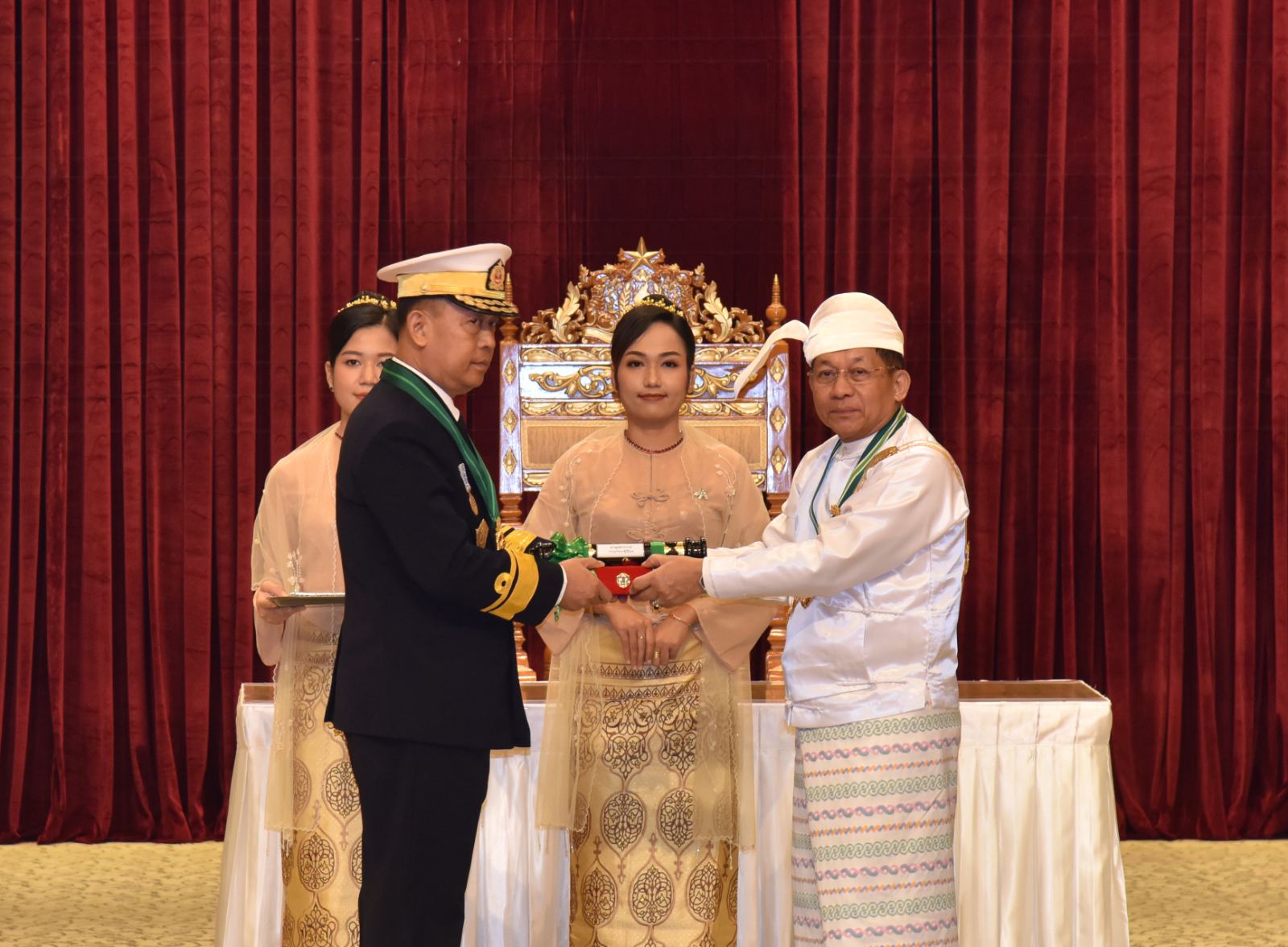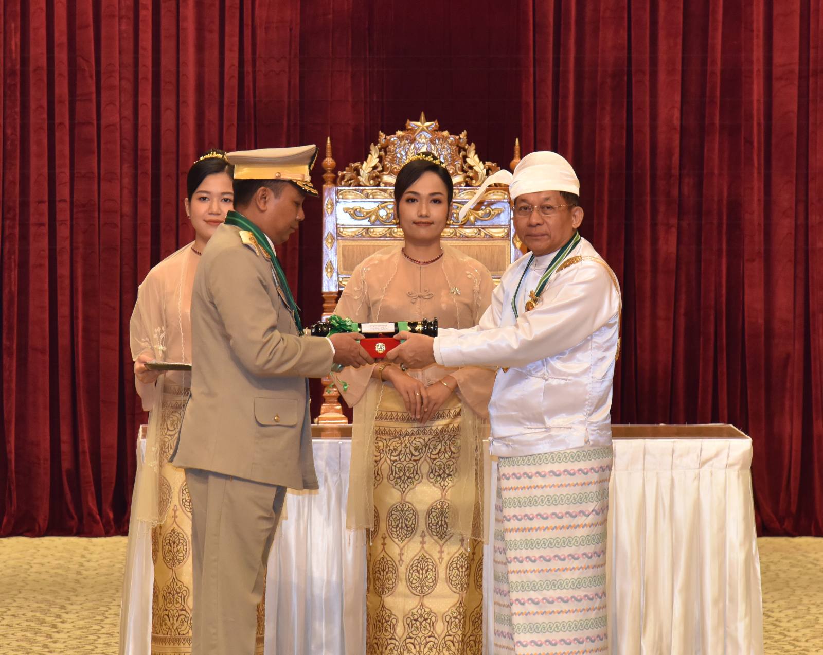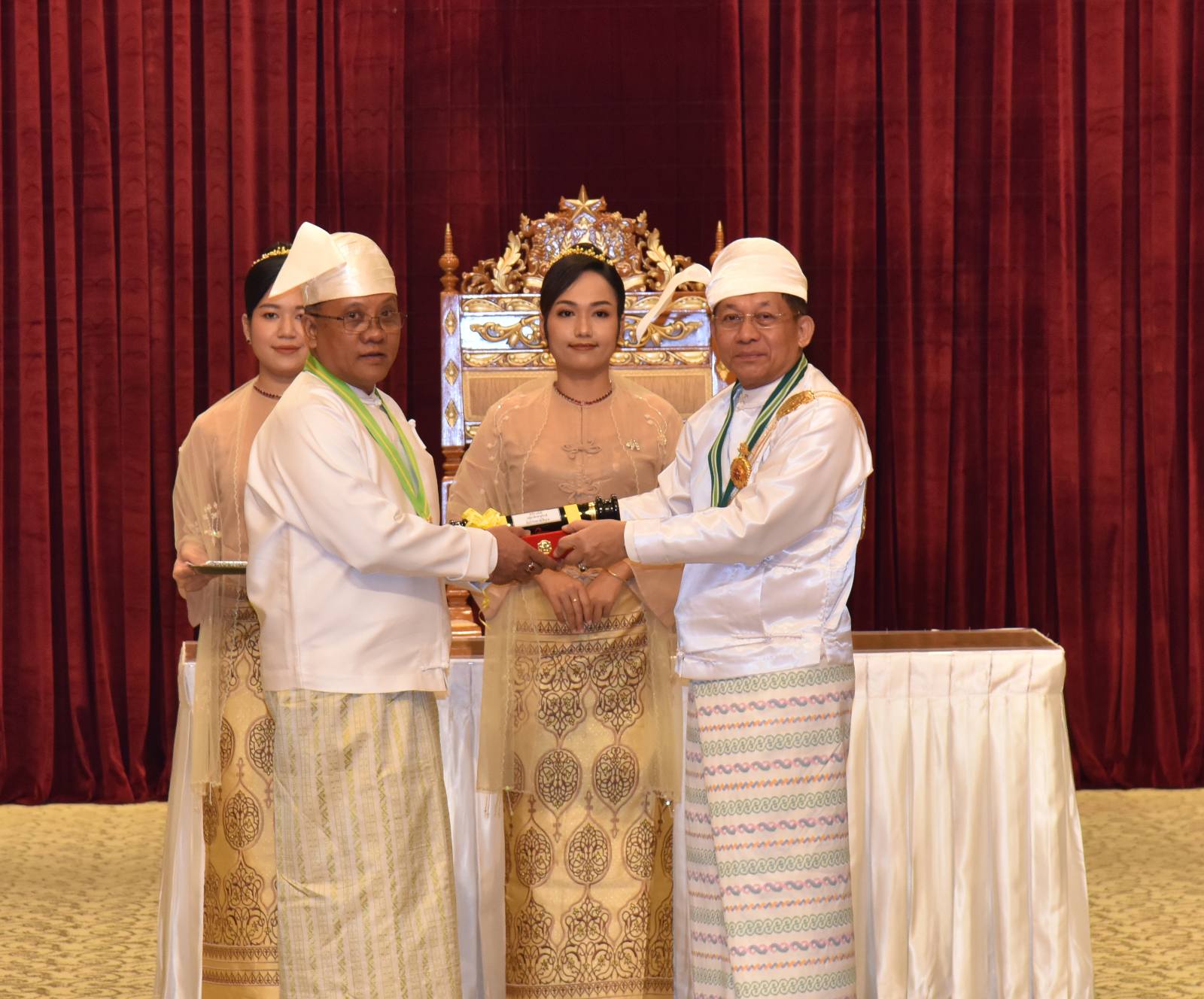 ၂၀၂၅ ခုနှစ်၊ ဂုဏ်ထူးဆောင်ဘွဲ့များ ချီးမြှင့်အပ်နှင်းခြင်းအခမ်းအနားကို ယနေ့နံနက်ပိုင်းတွင် နိုင်ငံတော်စီမံအုပ်ချုပ်ရေးကောင်စီဥက္ကဋ္ဌရုံး၊ သဘင်ဆောင်၌ ကျင်းပရာ နိုင်ငံတော်စီမံအုပ်ချုပ်ရေး ကောင်စီဥက္ကဋ္ဌ နိုင်ငံတော်ဝန်ကြီးချုပ် ဗိုလ်ချုပ်မှူးကြီး သတိုးမဟာသရေစည်သူ သတိုးသီရိသုဓမ္မ မင်းအောင်လှိုင် တက်ရောက်အမှာစကားပြောကြားပြီး ဂုဏ်ထူးဆောင်ဘွဲ့များချီးမြှင့်အပ်နှင်းသည်။