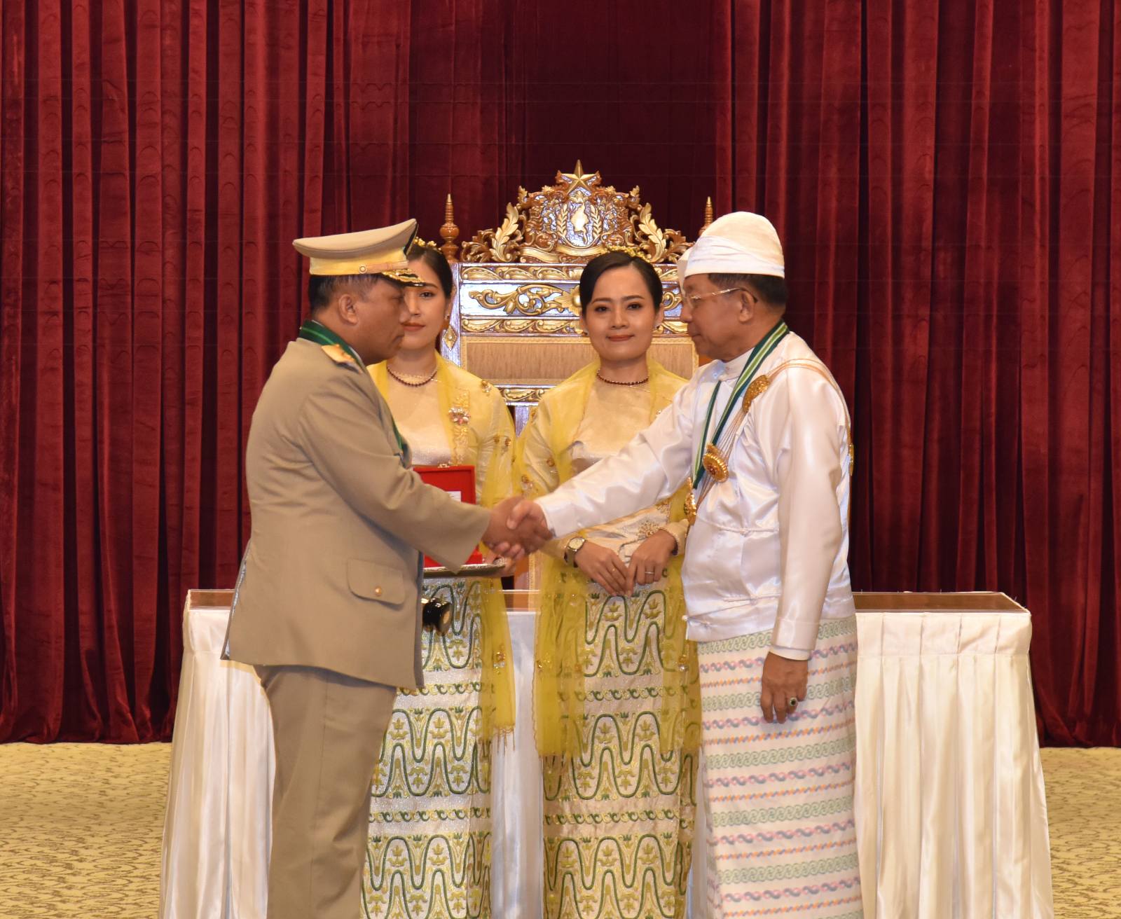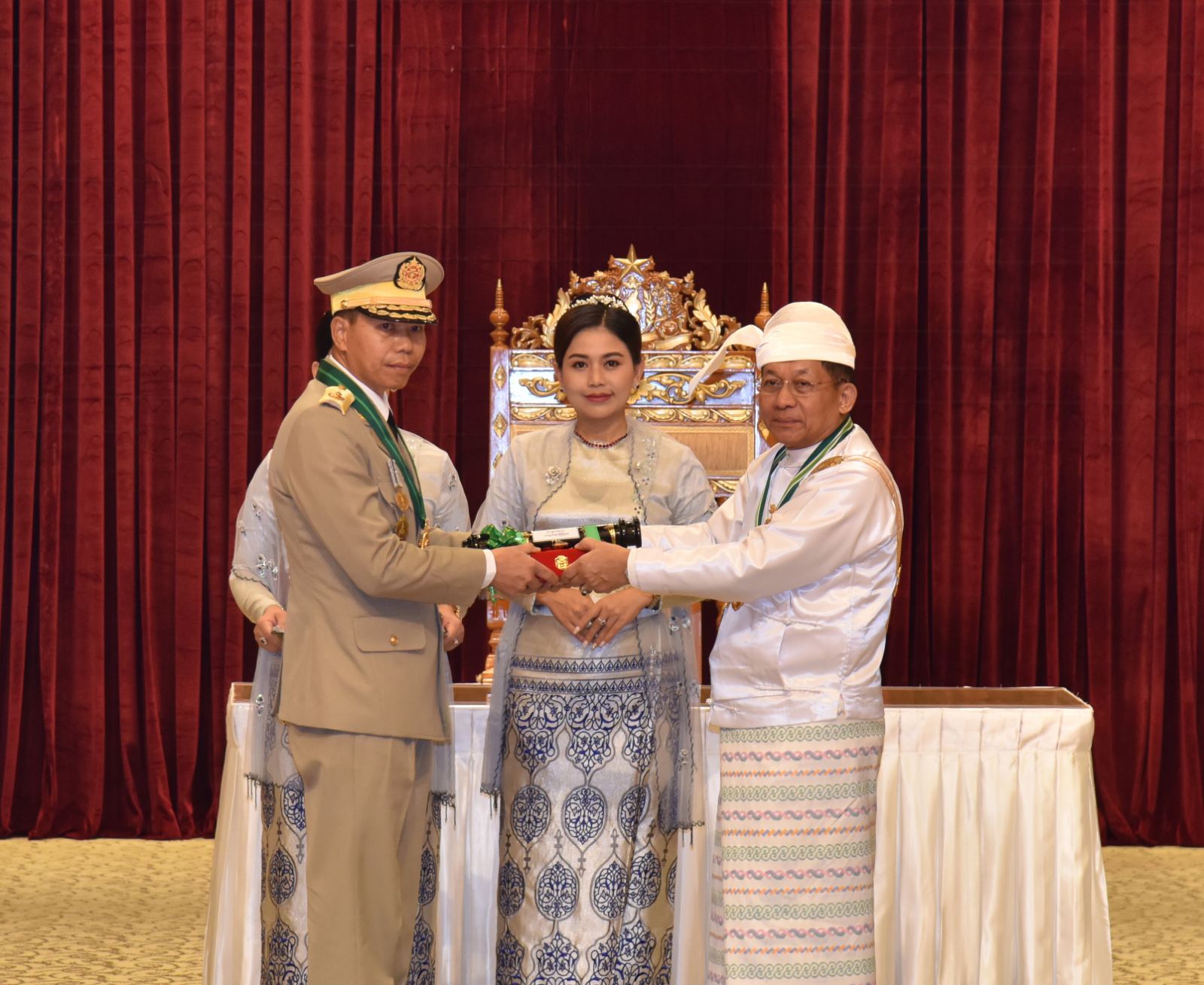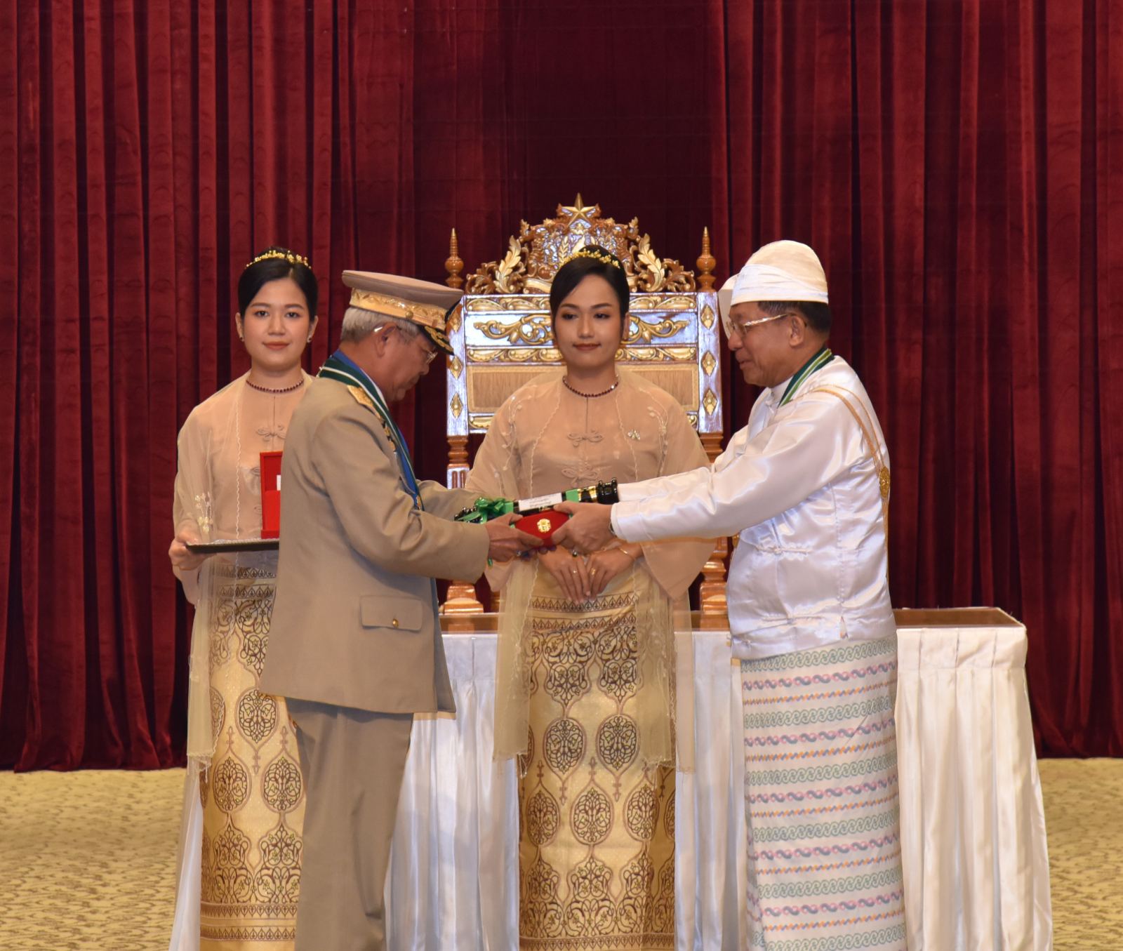 ၂၀၂၅ ခုနှစ်၊ ဂုဏ်ထူးဆောင်ဘွဲ့များ ချီးမြှင့်အပ်နှင်းခြင်းအခမ်းအနားကို ယနေ့နံနက်ပိုင်းတွင် နိုင်ငံတော်စီမံအုပ်ချုပ်ရေးကောင်စီဥက္ကဋ္ဌရုံး၊ သဘင်ဆောင်၌ ကျင်းပရာ နိုင်ငံတော်စီမံအုပ်ချုပ်ရေး ကောင်စီဥက္ကဋ္ဌ နိုင်ငံတော်ဝန်ကြီးချုပ် ဗိုလ်ချုပ်မှူးကြီး သတိုးမဟာသရေစည်သူ သတိုးသီရိသုဓမ္မ မင်းအောင်လှိုင် တက်ရောက်အမှာစကားပြောကြားပြီး ဂုဏ်ထူးဆောင်ဘွဲ့များချီးမြှင့်အပ်နှင်းသည်။