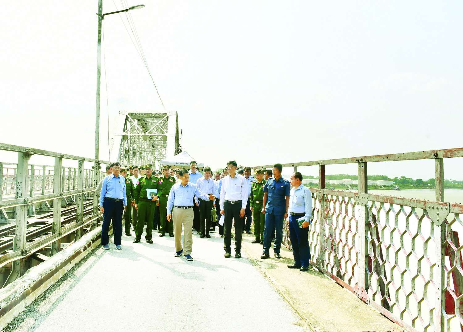 ဦးစွာ နိုင်ငံတော်စီမံအုပ်ချုပ်ရေးကောင်စီဥက္ကဋ္ဌ နိုင်ငံတော်ဝန်ကြီးချုပ်နှင့် အဖွဲ့ဝင်များသည် ငလျင်ဘေးဒဏ်ကြောင့် ထိခိုက်ပျက်စီးခဲ့ရသည့် စစ်ကိုင်းမြို့ (အင်းဝ)တံတား ပြိုကျပျက်စီးခဲ့မှု အခြေအနေများကို သွားရောက်ကြည့်ရှုစစ်ဆေးရာ တာဝန်ရှိသူများက ပြိုကျပျက်စီးခဲ့သည့် တံတားသံဘောင်များအား ရှင်းလင်းဖယ်ရှားနိုင်ရေး ဆောင်ရွက်လျက်ရှိမှု အခြေအနေများနှင့် ပတ်သက်၍ ရှင်းလင်းတင်ပြသည်။