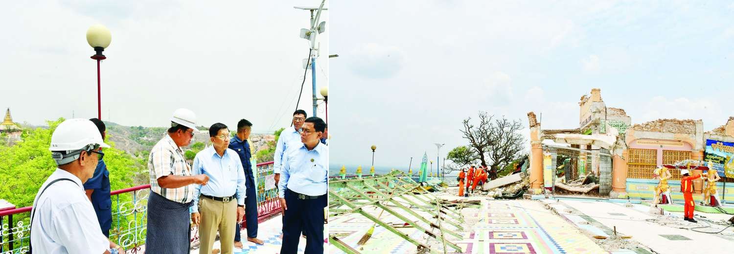 ထို့နောက် နိုင်ငံတော်စီမံအုပ်ချုပ်ရေးကောင်စီဥက္ကဋ္ဌ နိုင်ငံတော်ဝန်ကြီးချုပ်သည် ငလျင်ဒဏ်ကြောင့် ဗုဒ္ဓရုပ်ပွား တော်မြတ် ထိခိုက်ပျက်စီးခဲ့မှုအခြေအနေများကို လှည့်လည်ကြည့်ရှုစစ်ဆေးပြီး တာဝန်ရှိသူများ၏ တင်ပြချက်များအပေါ် ပြန်လည်ပြင်ဆင်ရေးလုပ်ငန်းများ ဆောင်ရွက်ရာ၌ ရှေးမူလက်ရာအတိုင်း ပြန်လည်ပြင်ဆင်ဆောင်ရွက်သွားရန်နှင့် အခြားလိုအပ်သည်များကို လမ်းညွှန်မှာကြားသည်။