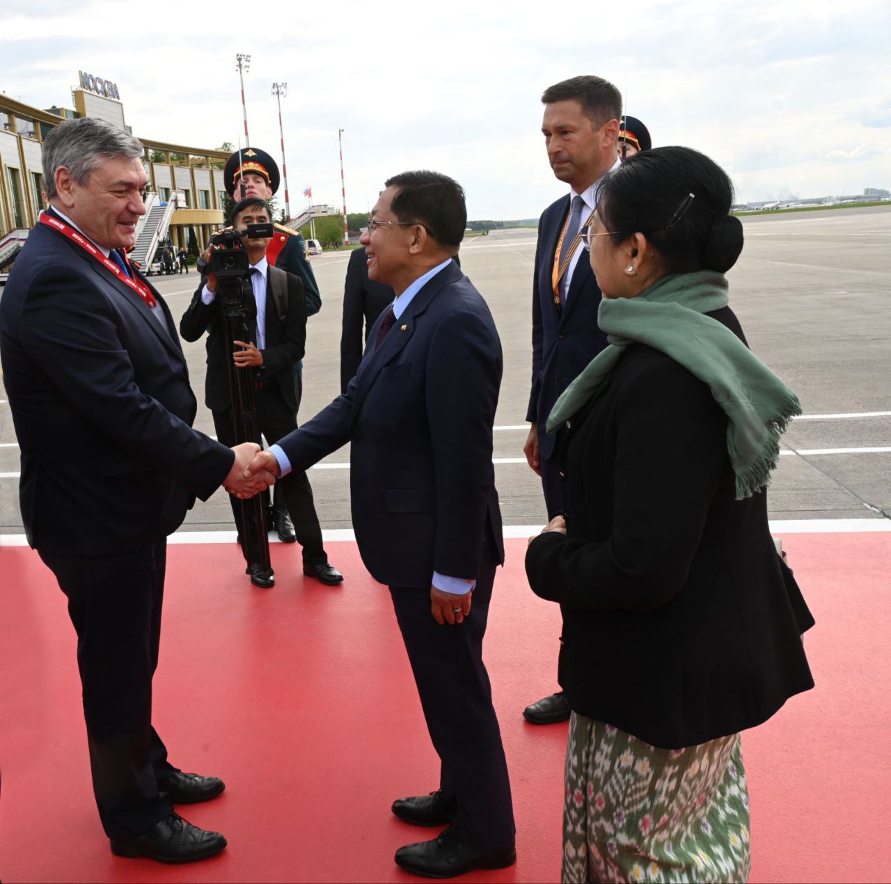 နိုင်ငံတော်စီမံအုပ်ချုပ်ရေးကောင်စီဥက္ကဋ္ဌ နိုင်ငံတော်ဝန်ကြီးချုပ် ဗိုလ်ချုပ်မှူးကြီး မင်းအောင်လှိုင် ဦးဆောင်သည့် မြန်မာအဆင့်မြင့်ကိုယ်စားလှယ်အဖွဲ့ မဟာမျိုးချစ်စစ်ပွဲကြီးအောင်ပွဲ နှစ် (၈၀) ပြည့် အထိမ်းအမှတ် စစ်ရေးပြအခမ်းအနားသို့ တက်ရောက်ရန် ရုရှားဖက်ဒရေးရှင်းနိုင်ငံသို့ ရောက်ရှိ