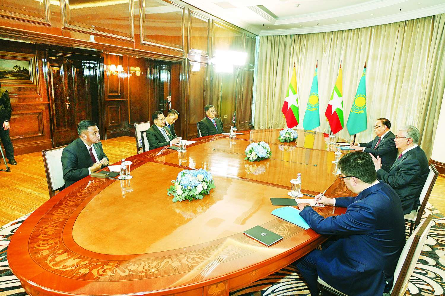 နိုင်ငံတော်စီမံအုပ်ချုပ်ရေးကောင်စီဥက္ကဋ္ဌ နိုင်ငံတော်ဝန်ကြီးချုပ် ဗိုလ်ချုပ်မှူးကြီး မင်းအောင်လှိုင် ကာဇက်စတန်နိုင်ငံသမ္မတ H.E.Mr. Kassym-Jomart Tokayev နှင့် တွေ့ဆုံဆွေးနွေး