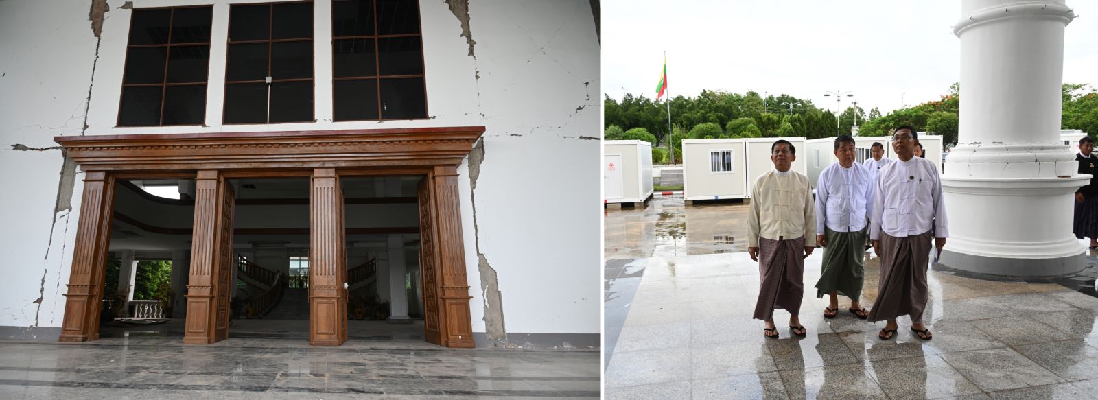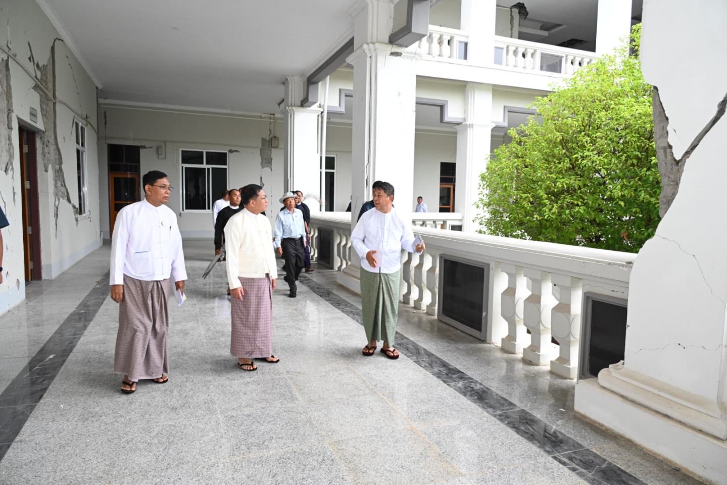နိုင်ငံတော်စီမံအုပ်ချုပ်ရေးကောင်စီဥက္ကဋ္ဌ နိုင်ငံတော်ဝန်ကြီးချုပ် ဗိုလ်ချုပ်မှူးကြီး မင်းအောင်လှိုင် ငလျင်ဒဏ်ကြောင့် ထိခိုက်ပျက်စီးမှုများဖြစ်ပေါ်ခဲ့သည့် ဝန်ကြီးရုံးအဆောက်အဦများအား ကြည့်ရှုစစ်ဆေး၊ လိုအပ်သည်များ လမ်းညွှန်မှာကြား