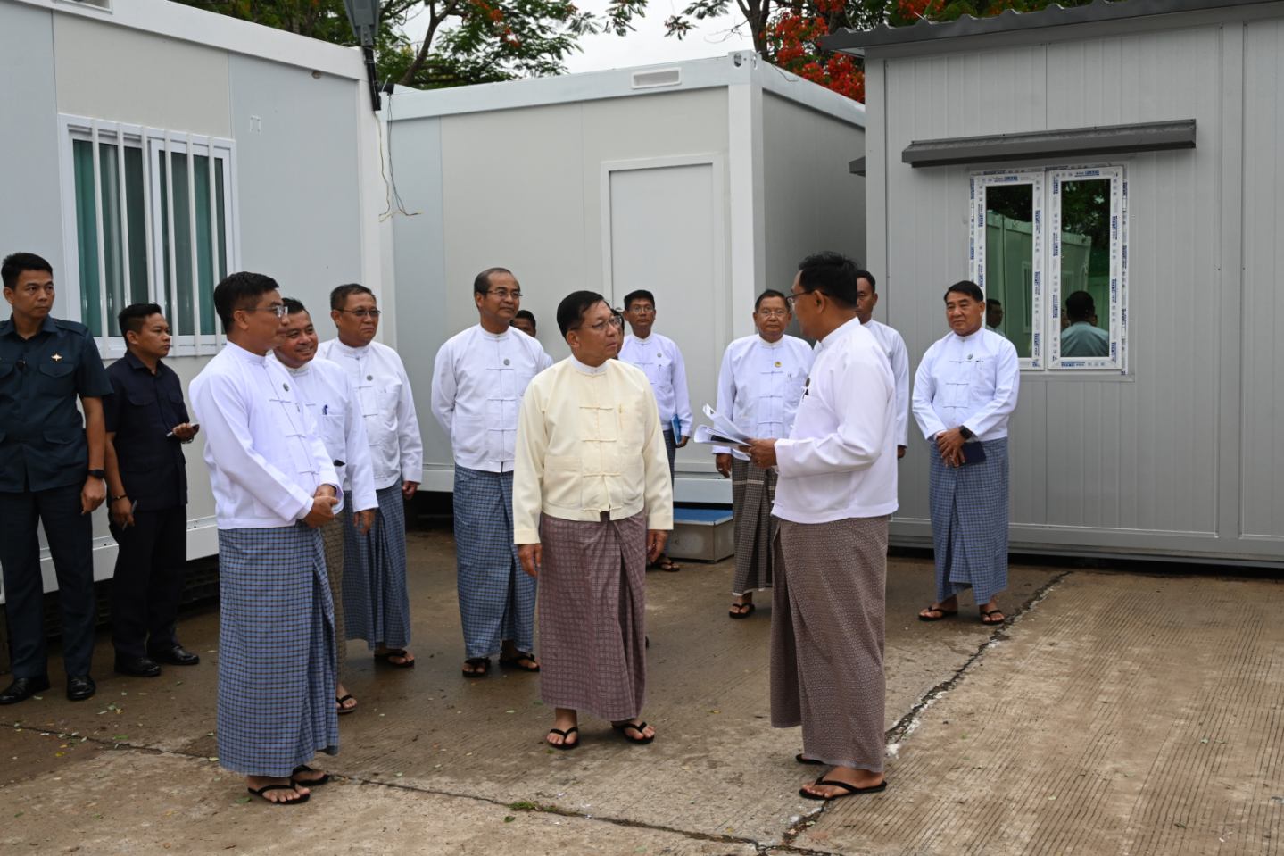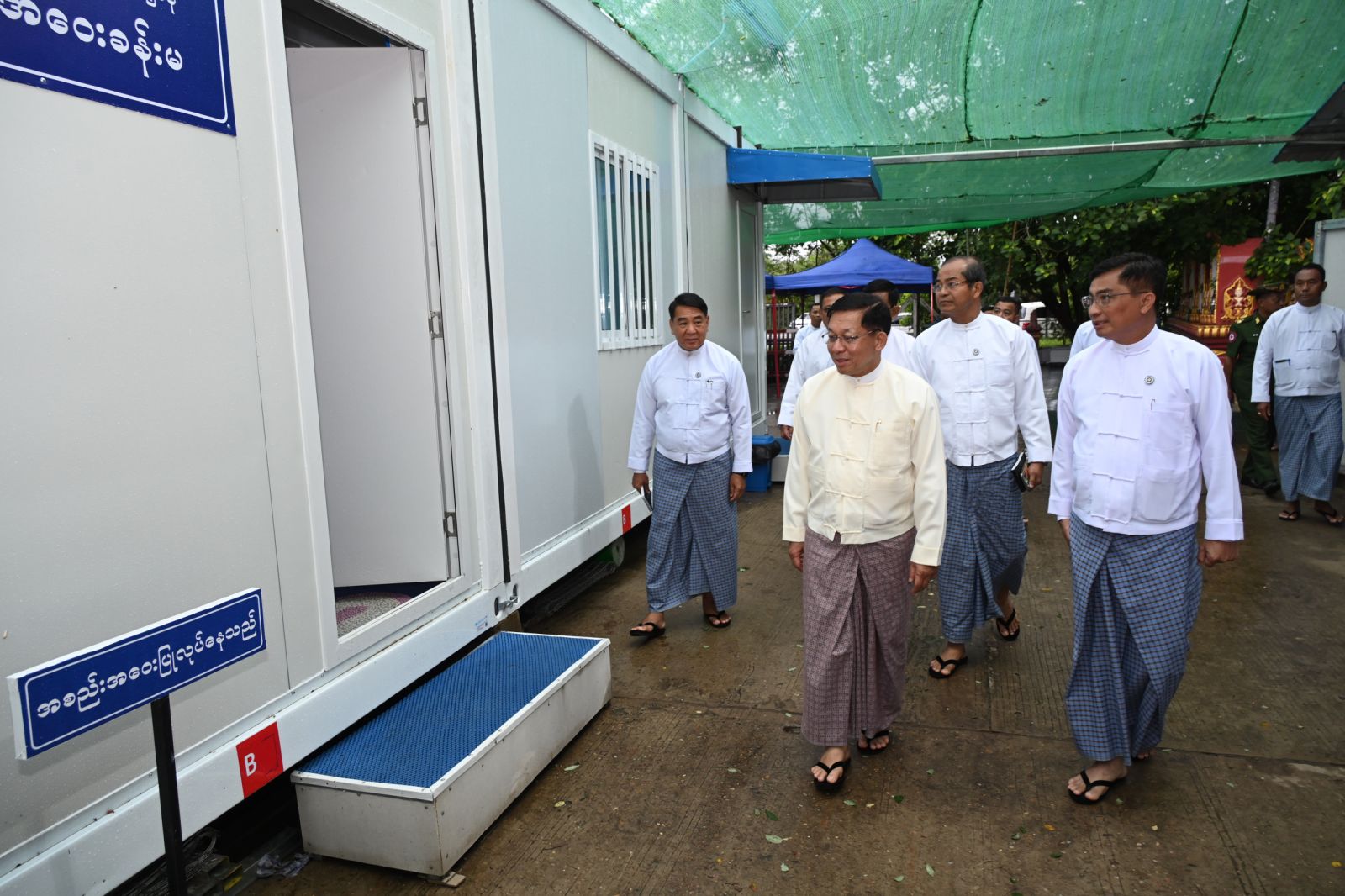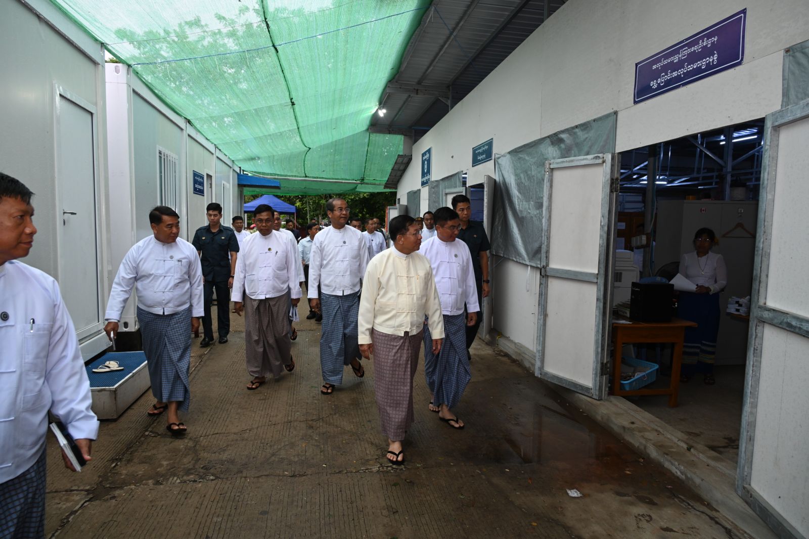 ယင်းနောက် နိုင်ငံတော်စီမံအုပ်ချုပ်ရေးကောင်စီဥက္ကဋ္ဌ နိုင်ငံတော်ဝန်ကြီးချုပ်နှင့် အဖွဲ့ဝင်များသည် အလုပ်သမားဝန်ကြီးဌာန၌ Prefabricated Office များဖြင့် ယာယီရုံးခန်းများ ဖွင့်လှစ်၍ လုပ်ငန်းလည်ပတ်မှု ပြတ်တောက်မှု မရှိစေရေး ဆောင်ရွက်လျက်ရှိမှု အခြေအနေများကို ရုံးခန်းများအလိုက် လိုက်လံကြည့်ရှုစစ်ဆေးပြီး လိုအပ်သည်များ လမ်းညွှန်မှာကြားသည်။