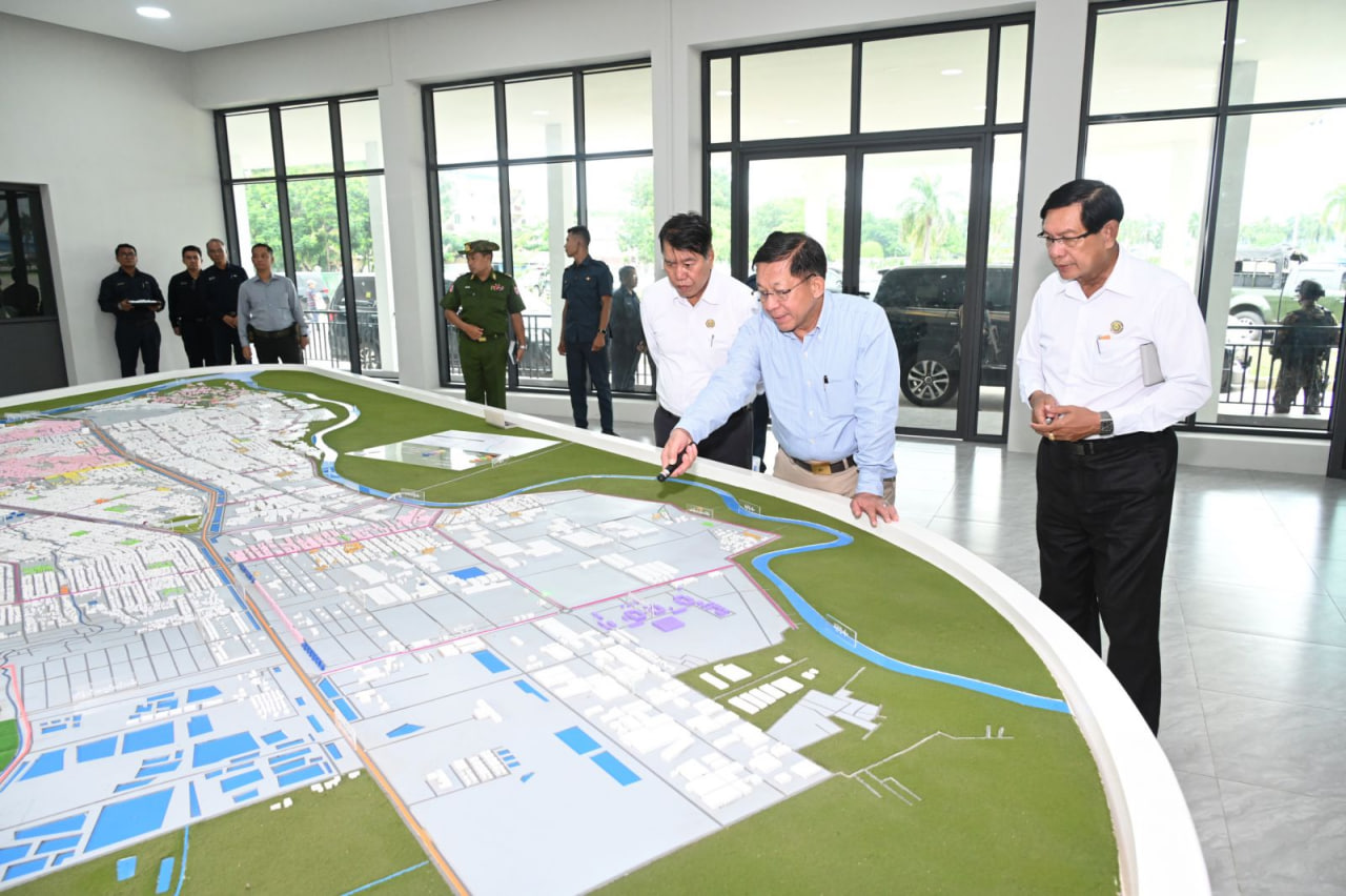 နိုင်ငံတော်စီမံအုပ်ချုပ်ရေးကောင်စီဥက္ကဋ္ဌ နိုင်ငံတော်ဝန်ကြီးချုပ် ဗိုလ်ချုပ်မှူးကြီး မင်းအောင်လှိုင် လှိုင်သာယာမြို့နယ် မြို့ပြဖွံ့ဖြိုးတိုးတက်ရေးဆောင်ရွက်ထားရှိမှု အခြေအနေများနှင့် အနောက်ပိုင်းနည်းပညာတက္ကသိုလ်တို့သို့ သွားရောက်ကြည့်ရှုစစ်ဆေး