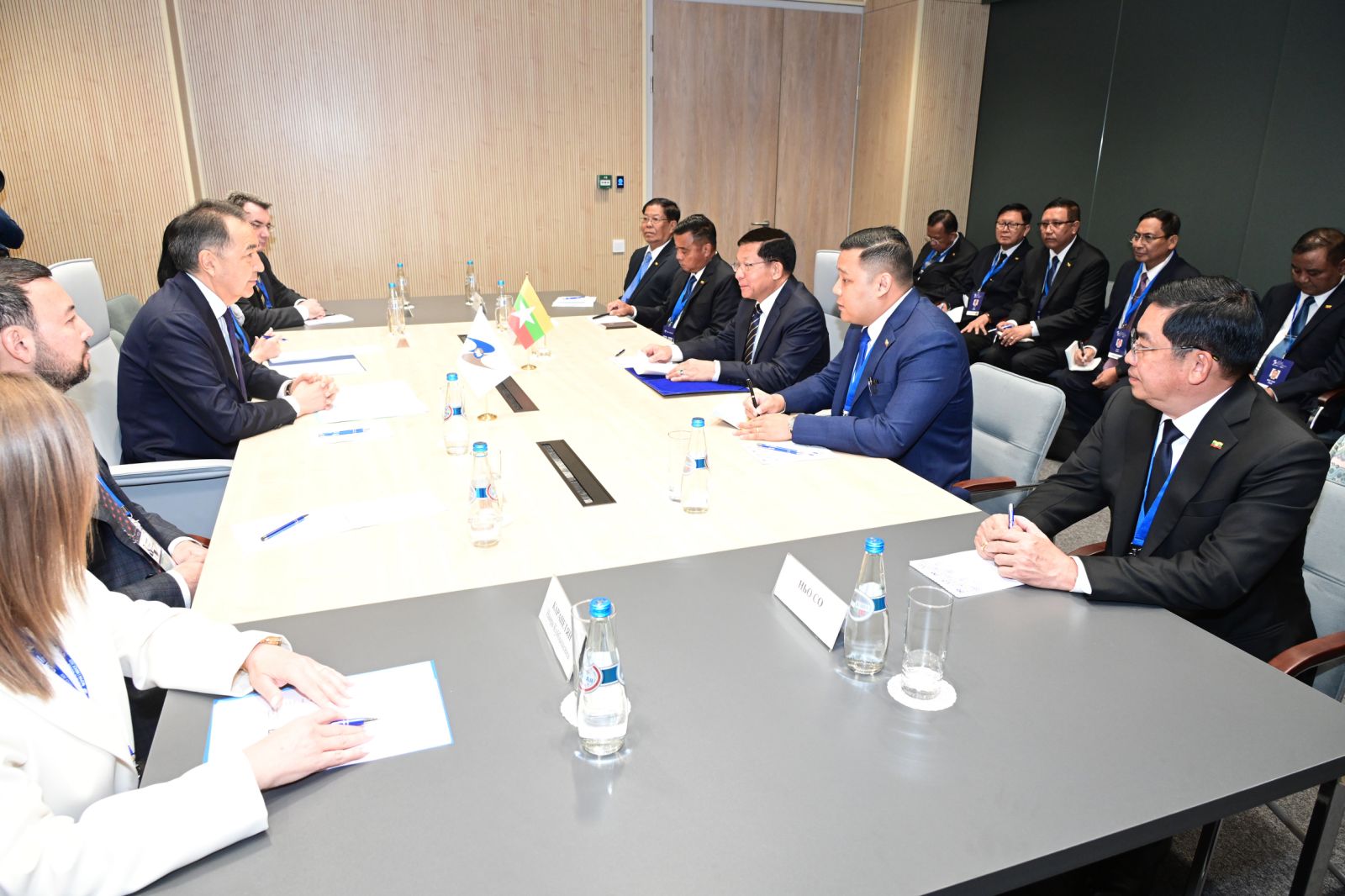 နိုင်ငံတော်စီမံအုပ်ချုပ်ရေးကောင်စီဥက္ကဋ္ဌ နိုင်ငံတော်ဝန်ကြီးချုပ် ဗိုလ်ချုပ်မှူးကြီး မင်းအောင်လှိုင် ဥရောပ-အာရှ စီးပွားရေးကော်မရှင် (EEC) ဘုတ်အဖွဲ့ဥက္ကဋ္ဌ Mr. Bakytzhan Abdirovich Sagintayev နှင့်တွေ့ဆုံဆွေးနွေး
