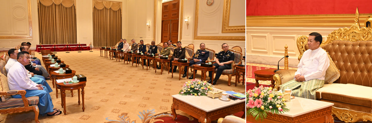 နိုင်ငံတော်စီမံအုပ်ချုပ်ရေးကောင်စီဥက္ကဋ္ဌ နိုင်ငံတော်ဝန်ကြီးချုပ် ဗိုလ်ချုပ်မှူးကြီး မင်းအောင်လှိုင် ထံ (၄၂)ကြိမ်မြောက် အာဆီယံရဲအဖွဲ့ညီလာခံသို့ တက်ရောက်ခဲ့သည့် အာဆီယံရဲအဖွဲ့ဝင် နိုင်ငံများမှ ကိုယ်စားလှယ်အဖွဲ့ခေါင်းဆောင်များနှင့် အာဆီယံရဲအဖွဲ့အတွင်းရေးမှူးရုံး၊ အမှုဆောင်ဒါရိုက်တာတို့ ဦးဆောင်သည့်ကိုယ်စားလှယ်အဖွဲ့က လာရောက်ဂါရဝပြုတွေ့ဆုံ