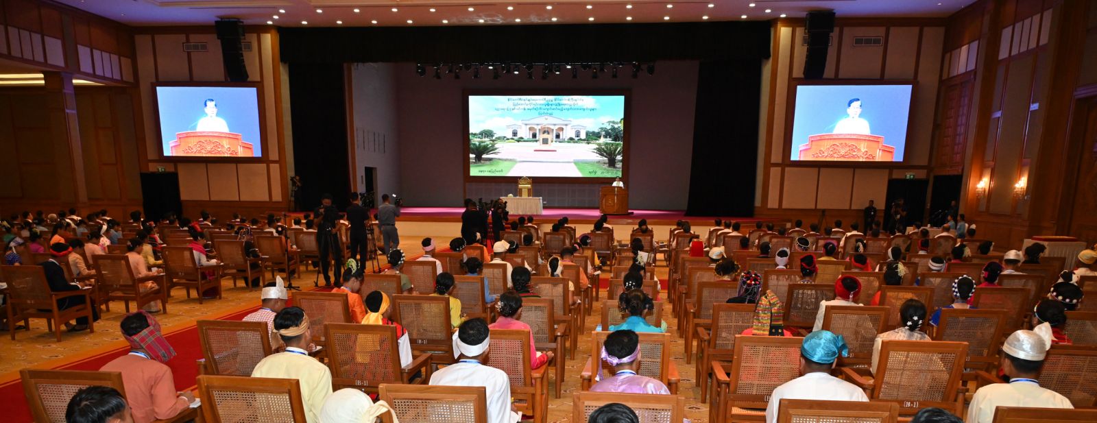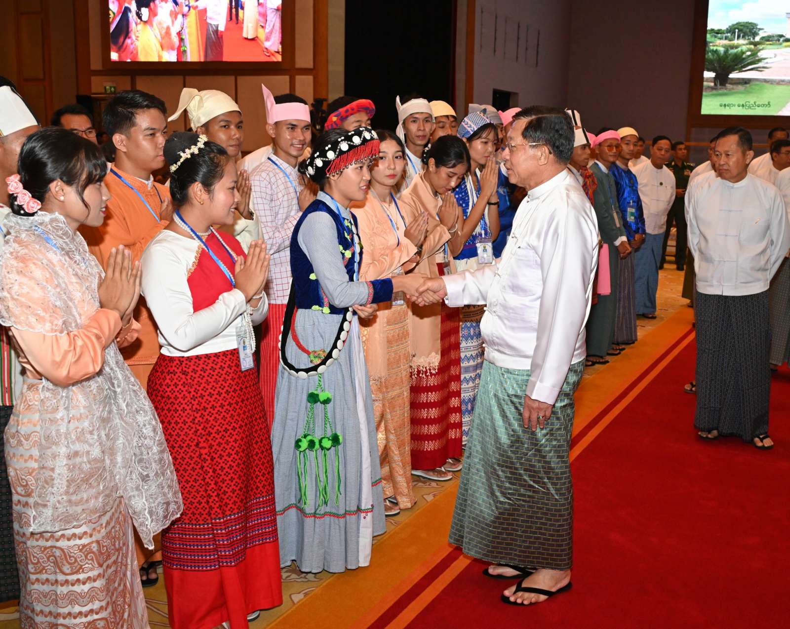 နိုင်ငံတော်စီမံအုပ်ချုပ်ရေးကောင်စီဥက္ကဋ္ဌ နိုင်ငံတော်ဝန်ကြီးချုပ် ဗိုလ်ချုပ်မှူးကြီး မင်းအောင်လှိုင် ပြည်ထောင်စုတိုင်းရင်းသားလူမျိုးများဖွံ့ဖြိုးရေးတက္ကသိုလ်ပညာရေးဘွဲ့ ၅ နှစ်သင်တန်း အမှတ်စဉ် (၆) မှ ကျောင်းသား၊ ကျောင်းသူများကို တွေ့ဆုံအမှာစကားပြောကြား