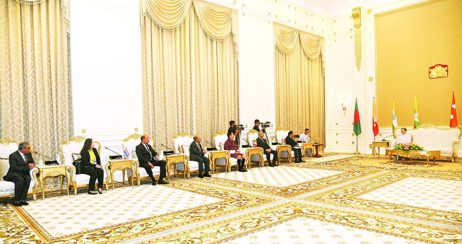 နိုင်ငံတော်စီမံအုပ်ချုပ်ရေးကောင်စီဥက္ကဋ္ဌ နိုင်ငံတော်ဝန်ကြီးချုပ် ဗိုလ်ချုပ်မှူးကြီး မင်းအောင်လှိုင်ထံ ဘင်းမ်စတက်အဖွဲ့ဝင်နိုင်ငံများမှ အမျိုးသားလုံခြုံရေးဆိုင်ရာ အကြီးအကဲများနှင့် ဘင်းမ်စတက်အတွင်းရေးမှူးချုပ်တို့က လာရောက်ဂါရဝပြုတွေ့ဆုံ