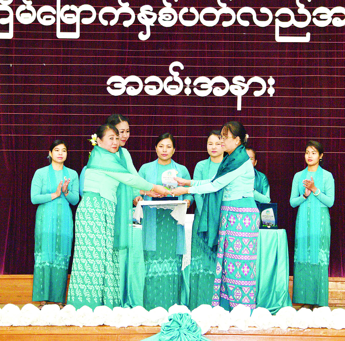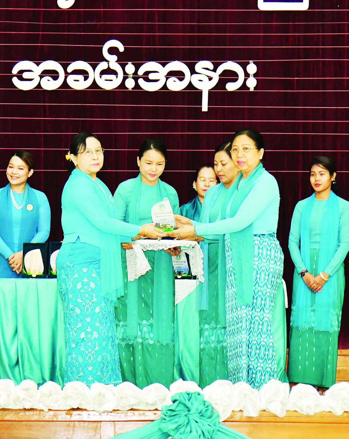 ယင်းနောက် နိုင်ငံတော်စီမံအုပ်ချုပ်ရေးကောင်စီဥက္ကဋ္ဌ နိုင်ငံတော်ဝန်ကြီးချုပ်၏ဇနီး မြန်မာနိုင်ငံအမျိုးသမီးရေးရာအဖွဲ့ချုပ် ဂုဏ်ထူးဆောင်နာယက ဒေါ်ကြူကြူလှက မြန်မာနိုင်ငံ အမျိုးသမီးရေးရာအဖွဲ့ချုပ်၏ အမျိုးသမီးများဖွံ့ဖြိုးတိုးတက်ရေးဆိုင်ရာ လုပ်ငန်းဆောင်ရွက်မှုအပေါ် ချီးမြှင့်သည့် စွမ်းဆောင်မှုနှင့် လွှမ်းခြုံမှုအကောင်းဆုံး ပထမဆုရရှိသည့် ရန်ကုန်တိုင်းဒေသကြီး၊ ဒုတိယဆုရရှိသည့် ပဲခူးတိုင်းဒေသကြီး၊ တတိယဆုရရှိသည့် ရှမ်းပြည်နယ်နှင့် အထူးဆုရရှိသည့် ကချင်ပြည်နယ်တို့မှ အမျိုးသမီးရေးရာအဖွဲ့ဥက္ကဋ္ဌများကို ဆုများပေးအပ်ချီးမြှင့်သည်။