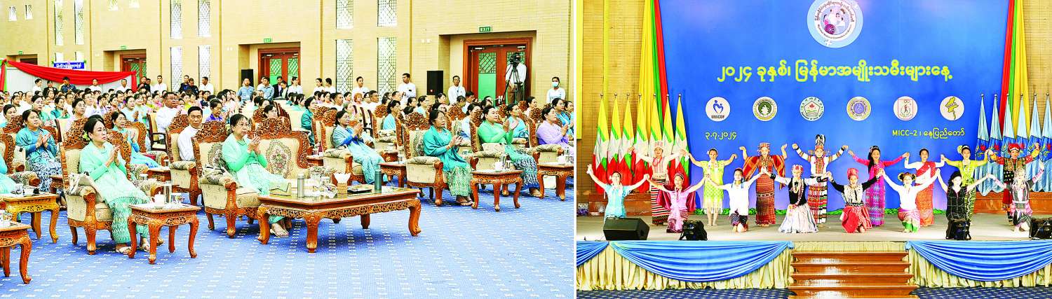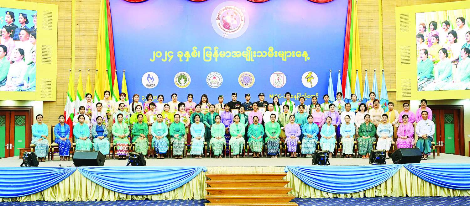 ၂၀၂၄ ခုနှစ် မြန်မာအမျိုးသမီးများနေ့အခမ်းအနားကို ယနေ့နံနက်ပိုင်းတွင် နေပြည်တော်ရှိ မြန်မာအပြည်ပြည်ဆိုင်ရာကွန်ဗင်းရှင်းဗဟိုဌာန -၂ (MICC-II) ၌ကျင်းပရာ မြန်မာနိုင်ငံအမျိုးသမီးရေးရာအဖွဲ့ချုပ် ဂုဏ်ထူးဆောင်နာယက နိုင်ငံတော်စီမံအုပ်ချုပ်ရေးကောင်စီဥက္ကဋ္ဌ နိုင်ငံတော်ဝန်ကြီးချုပ်၏ဇနီး ဒေါ်ကြူကြူလှတက်ရောက်ချီးမြှင့်သည်။