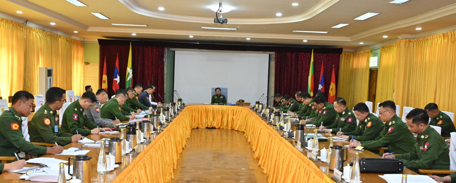 ဦးစွာ အရှေ့ပိုင်းတိုင်းစစ်ဌာနချုပ်၊ အစည်းအဝေးခန်းမတွင် တိုင်းမှူး ဗိုလ်ချုပ် ဇော်မင်းလတ် က အရှေ့ပိုင်းတိုင်းစစ်ဌာနချုပ် နယ်မြေအတွင်း တပ်မတော်သားများ၊ မြန်မာနိုင်ငံရဲတပ်ဖွဲ့ဝင်များနှင့် ပြည်သူ့စစ် (ဌာနေ)အဖွဲ့ဝင်များ ပူးပေါင်း၍ နယ်မြေလုံခြုံရေးနှင့် လမ်းတံတားများလုံခြုံရေးအတွက် ဆောင်ရွက်လျက်ရှိမှု၊ KNPP ၊ KNDF အဖွဲ့နှင့် PDF အမည်ခံအကြမ်းဖက်သမားများ၏တိုက်ခိုက်မှုကြောင့် ထိခိုက်ပျက်စီးမှုများ ဖြစ်ပေါ်ခဲ့သည့် လွိုင်ကော်မြို့နှင့် အခြားမြို့များအား ပြန်လည်ထူထောင်ရေး လုပ်ငန်းများ ဆောင်ရွက်ပေးလျက်ရှိမှု၊ နယ်မြေလုံခြုံရေးလုပ်ငန်းများဆောင်ရွက်စဉ် PDF အမည်ခံအကြမ်းဖက် သမားများထံမှ လက်နက်ခဲယမ်းများသိမ်းဆည်းရမိမှုနှင့် PDF အမည်ခံအကြမ်းဖက်သမားများ အလင်း ဝင်ရောက်လာမှု၊ တရားမဝင်သစ်များ ဖမ်းဆီးရမိမှုအခြေအနေများနှင့် ပတ်သက်၍ ရှင်းလင်းတင်ပြ သည်။