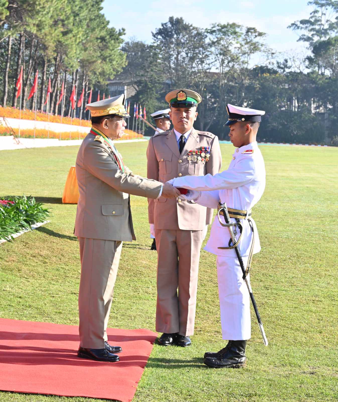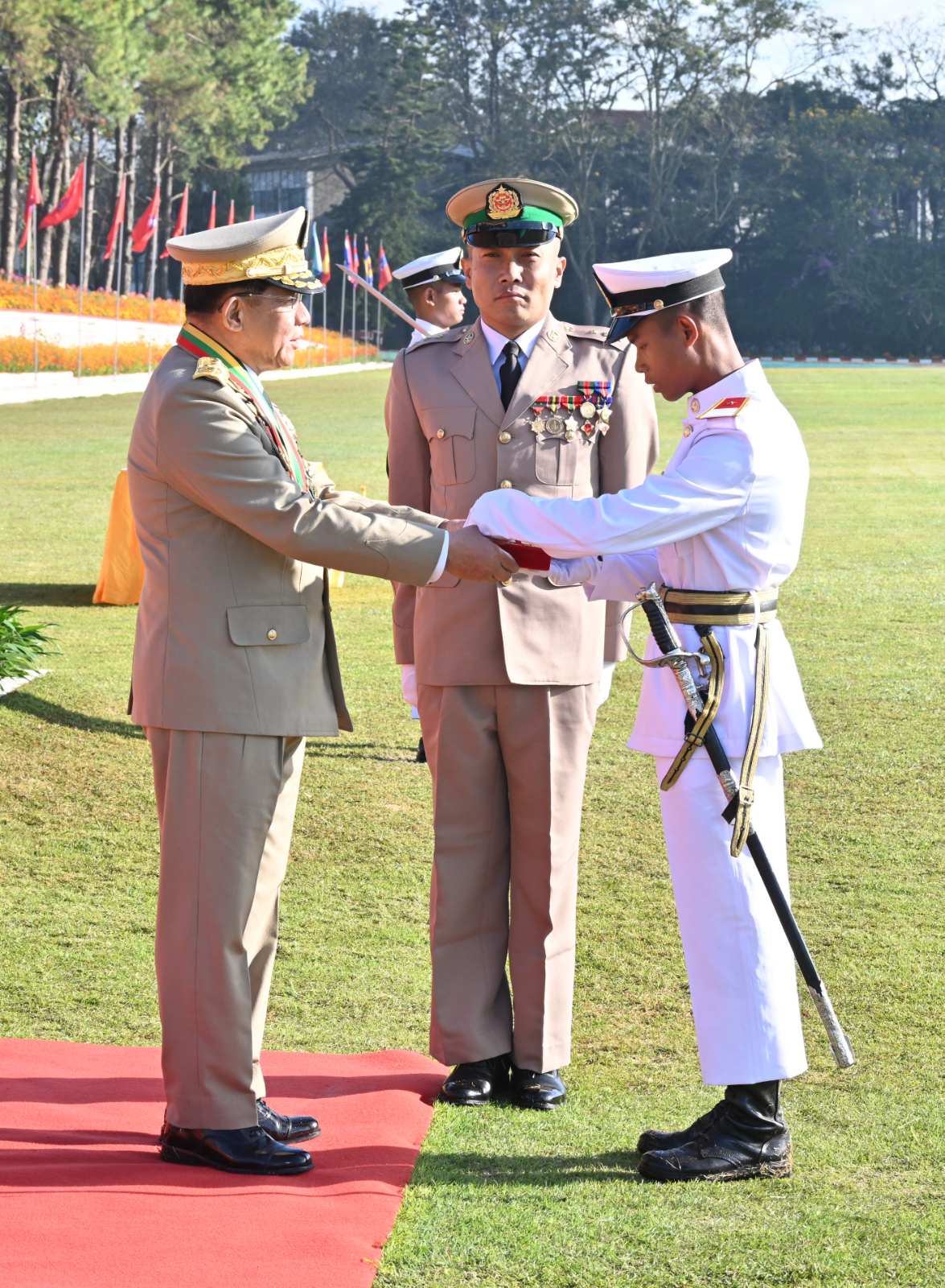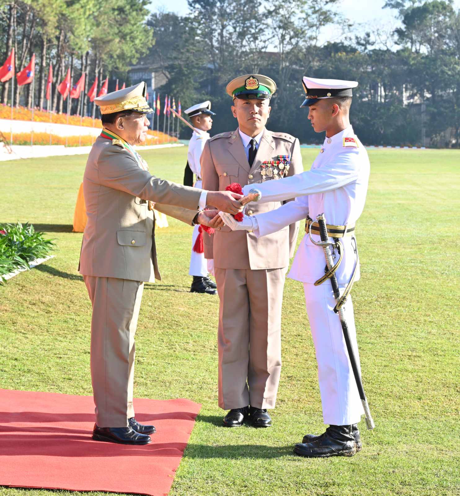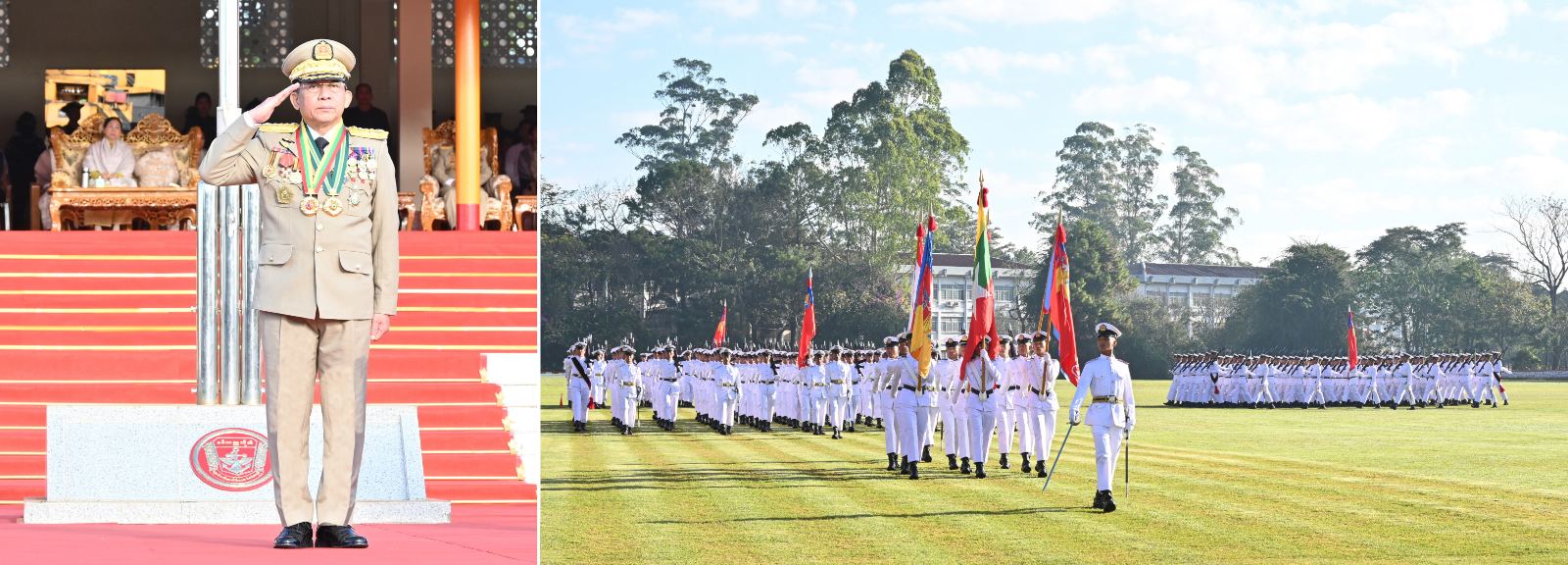 နိုင်ငံတော်စီမံအုပ်ချုပ်ရေးကောင်စီဥက္ကဋ္ဌ တပ်မတော်ကာကွယ်ရေးဦးစီးချုပ် ဗိုလ်ချုပ်မှူးကြီး သတိုးမဟာသရေစည်သူ သတိုးသီရိသုဓမ္မ မင်းအောင်လှိုင် စစ်တက္ကသိုလ် ဗိုလ်လောင်းသင်တန်းအမှတ်စဉ်(၆၆) သင်တန်းဆင်းဂုဏ်ပြုစစ်ရေးပြအခမ်းအနားသို့ တက်ရောက် မိန့်ခွန်းပြောကြား