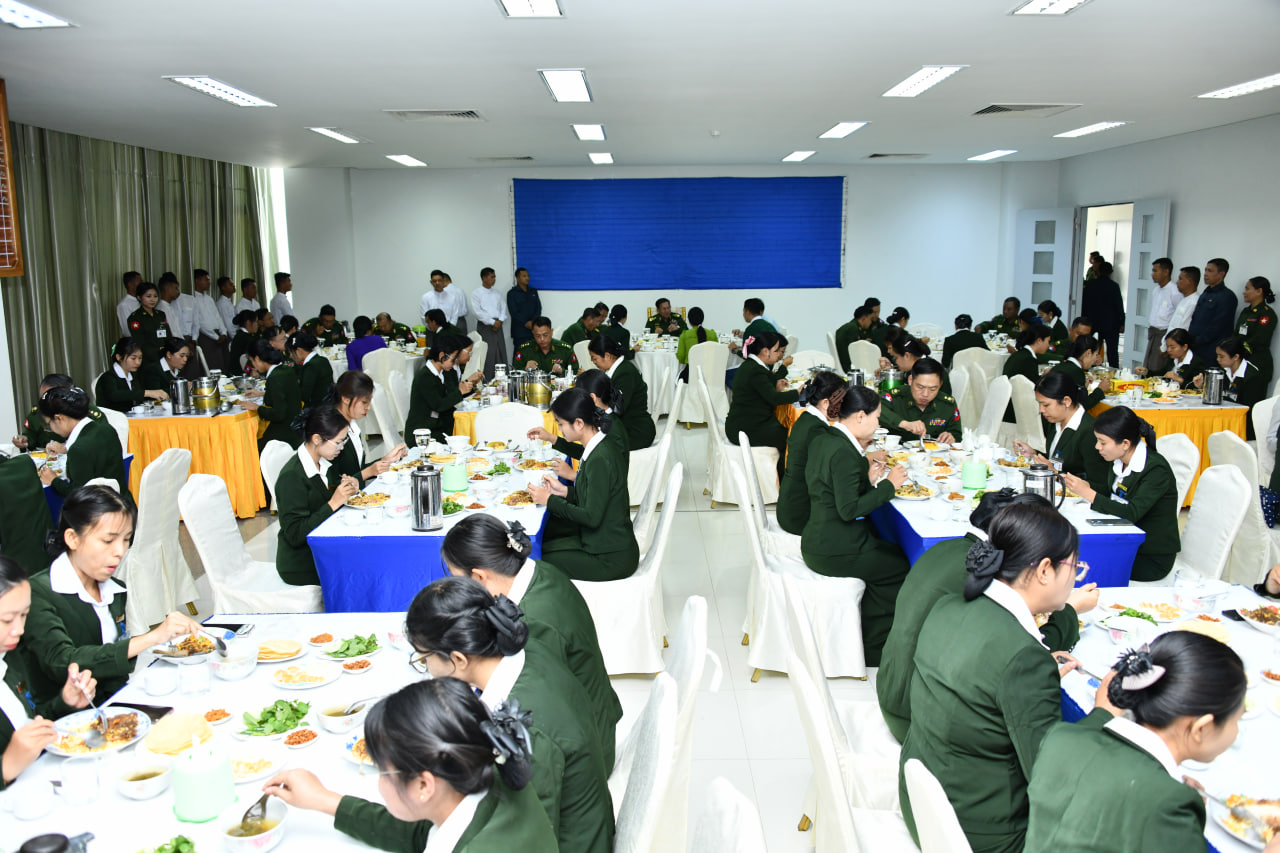 ထို့နောက် နိုင်ငံတော်စီမံအုပ်ချုပ်ရေးကောင်စီဥက္ကဋ္ဌ တပ်မတော်ကာကွယ်ရေးဦးစီးချုပ်က သင်တန်းကျောင်းမှ အရာရှိ၊ စစ်သည်၊ မိသားစုများနှင့် သင်တန်းသားများအတွက် စားသောက်ဖွယ်ရာပစ္စည်းများကိုပေးအပ်ရာ တပ်နယ်မှူးက လက်ခံရယူသည်။