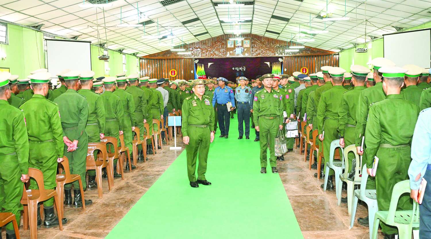 နိုင်ငံတော်စီမံအုပ်ချုပ်ရေးကောင်စီဥက္ကဋ္ဌ တပ်မတော်ကာကွယ်ရေးဦးစီးချုပ် ဗိုလ်ချုပ်မှူးကြီး မင်းအောင်လှိုင် တပ်မတော်(ကြည်း) တိုက်ခိုက်ရေးကျောင်း(ဗထူး)မှ သင်တန်းသားအရာရှိများအား တွေ့ဆုံအမှာစကားပြောကြား
