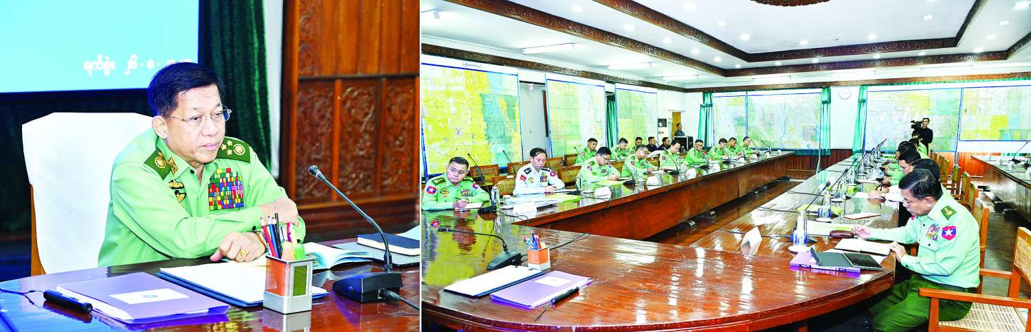 ရှင်းလင်းတင်ပြမှုများအပေါ် နိုင်ငံတော်စီမံအုပ်ချုပ်ရေးကောင်စီ ဥက္ကဋ္ဌ တပ်မတော်ကာကွယ်ရေးဦးစီးချုပ် က ပြည်သူများ၏ အသက်အိုးအိမ် စည်းစိမ်များ လုံခြုံရေးအတွက် နယ်မြေတည်ငြိမ်အေးချမ်းရေးလုပ်ငန်းများကို စနစ်တကျဆောင် ရွက်နေရန် လိုကြောင်း၊ ပြည်သူ့စစ်များ၊ စစ်မှုထမ်းဟောင်းများ၊ မြန်မာနိုင်ငံရဲတပ်ဖွဲ့ ဝင်များ ပူးပေါင်း၍ နယ်မြေလုံခြုံတည်ငြိမ်ရေးကို ဆောင်ရွက်သွားရမည်ဖြစ်ကြောင်း၊ နယ်မြေ တည်ငြိမ်အေးချမ်းရေးနှင့် လမ်းပန်းဆက်သွယ်မှုများလုံခြုံချောမွေ့ကောင်းမွန် စေရေးအတွက် ဆောင်ရွက်ရာတွင် ရေရှည်အတွက် ထည့်သွင်းစဉ်းစားဆောင်ရွက် သွားရန်လိုကြောင်း၊ တပ်မတော်သားများနှင့် မြန်မာနိုင်ငံရဲတပ်ဖွဲ့ဝင်များ၏ စွမ်းရည် များတိုးတက်စေရေးအတွက်လည်း ဆောင်ရွက်သွားရန်လိုကြောင်း၊ လုံခြုံရေးနှင့် ပတ်သက်သည့် သတင်းများ စဉ်ဆက်မပြတ်ရရှိရေး ဆောင်ရွက်ရန်လိုအပ်မှုနှင့် အခြား နယ်မြေဒေသလုံခြုံရေးနှင့် တည်ငြိမ်အေးချမ်းရေးဆိုင်ရာများ နှင့်ပတ်သက်၍ လိုအပ် သည်များကိုလမ်းညွှန်မှာကြားခဲ့သည်။