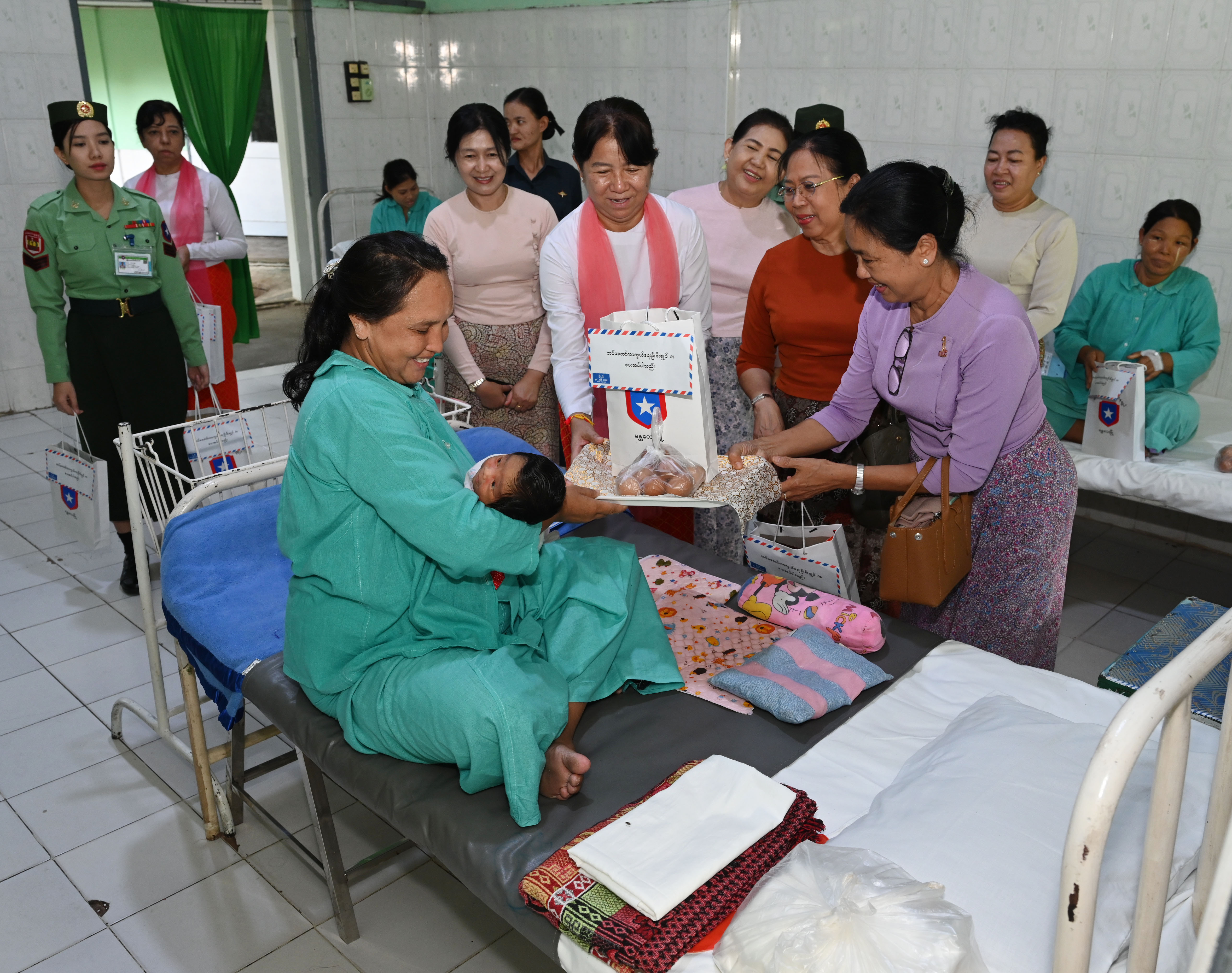 အလားတူ နိုင်ငံတော်စီမံအုပ်ချုပ်ရေးကောင်စီဥက္ကဋ္ဌ တပ်မတော်ကာကွယ်ရေး ဦးစီးချုပ်၏ ဇနီးနှင့် အဖွဲ့ဝင်များသည်လည်း ဆေးရုံအမျိုးသမီးကုသဆောင်၌ တက်ရောက်ဆေးကုသမှုခံယူလျက်ရှိသည့် အရာရှိ၊ စစ်သည်များ၏ မိသားစုဝင်များ အား လိုက်လံကြည့်ရှုအားပေး စကားပြောကြားခဲ့ပြီး ဂုဏ်ပြုချီးမြှင့်ငွေနှင့် လက်ဆောင် ပစ္စည်းများပေးအပ်သည်။