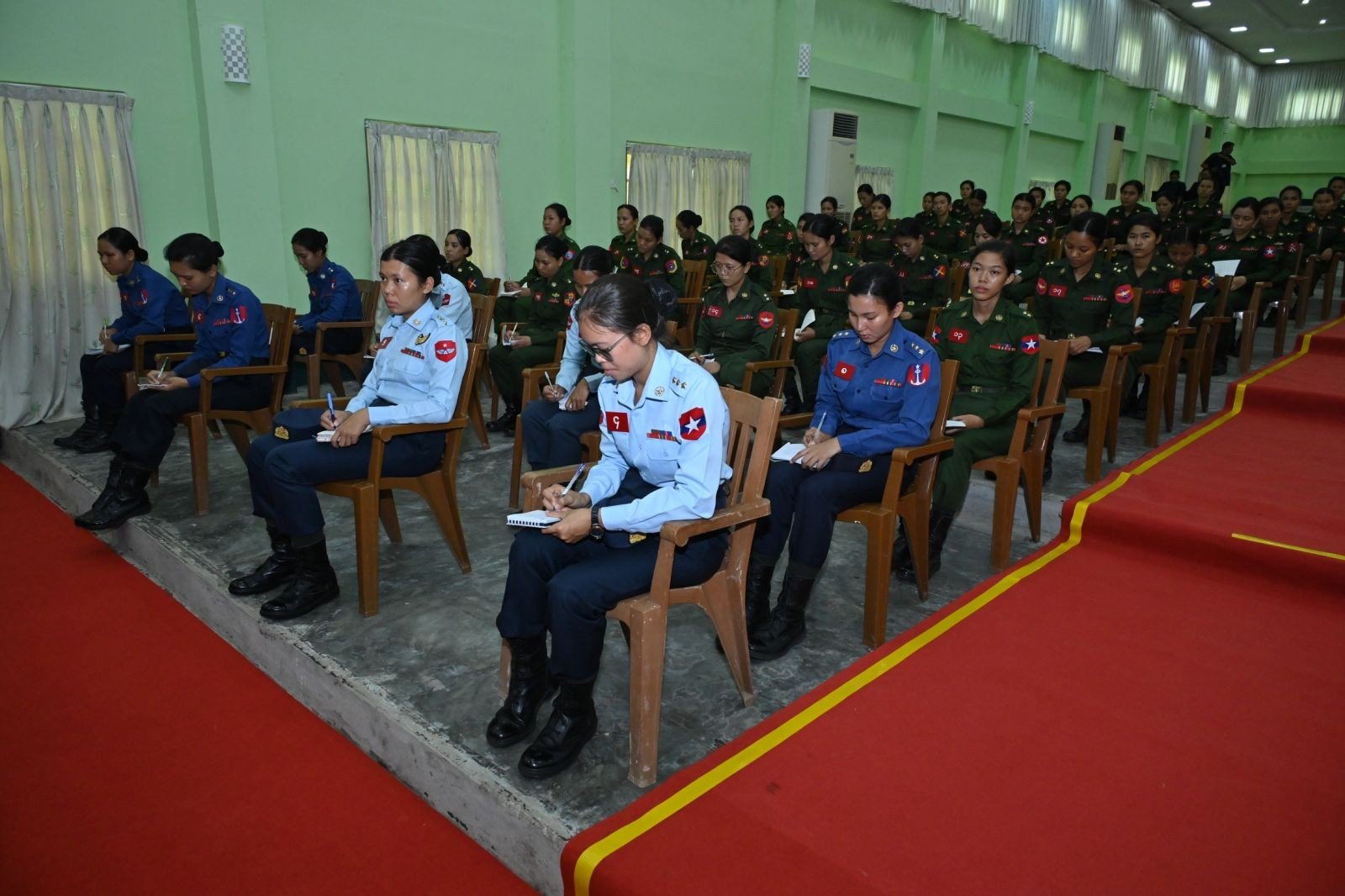 တပ်မတော်၌ အမျိုးသမီးစစ်မှုထမ်းများ ခန့်အပ်တာဝန်ပေးအပ်ထမ်းဆောင်လျက်ရှိသည်မှာ ရှေးယခင်ကတည်းကပင် ရှိခဲ့ကြောင်း၊ သို့သော် အကြောင်းအမျိုးမျိုးကြောင့် ကြားကာလအချိန်များတွင် ဆေးဝန်ထမ်းတပ်ဖွဲ့များမှအပ အခြားအမျိုးသမီးစစ်မှုထမ်းများကို တာဝန်ပေးအပ်နိုင်မှု မရှိခဲ့ကြောင်း၊ ၂၀၁၄ ခုနှစ်၌ တပ်မတော်တွင် အမျိုးသမီးအရာရှိများ ခန့်အပ်တာဝန်ပေးအပ်နိုင်ရေးဆောင်ရွက်ခဲ့ပြီး လက်ရှိအချိန်၌ တပ်မတော် (ကြည်း၊ ရေ၊ လေ) နှင့် လက်ရုံးဝန်ထမ်းတပ်ဖွဲ့အသီးသီး၌ အမျိုးသမီးအရာရှိများ တာဝန်ထမ်းဆောင်လျက်ရှိပြီဖြစ်ကြောင်း၊ ထို့ပြင် အခြားအဆင့်အမျိုးသမီးစစ်မှုထမ်းများကိုလည်း ခန့်အပ်တာဝန်ပေးအပ်ခဲ့ပြီး တပ်မတော်တွင် အမျိုးသမီးစစ်မှုထမ်းများကို ဆက်လက် ခန့်အပ်ပေးလျက်ရှိကြောင်း။