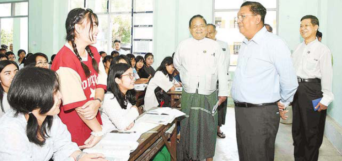 ထို့နောက် ပြည်ထောင်စုဝန်ကြီးနှင့် အဖွဲ့သည် ကျောင်းသား ကျောင်းသူများ စိတ်အေးချမ်းသာစွာ နေထိုင်သင်ကြားလေ့ကျင့်နိုင်ရေး၊ စားသောက်ရေးနှင့် ကျန်းမာရေးကို ဂရုပြုဆောင်ရွက်ရေး၊ ကျောင်းသား ကျောင်းသူများ ရာနှုန်းပြည့် စခန်းသွင်းဝင်ရောက်ရေး၊ ဆရာ ဆရာမများ၏ အုပ်ချုပ်ရေးပိုင်းဆိုင်ရာ အဆင်ပြေချောမွေ့စေရေး တာဝန်ရှိသူများနှင့် ပေါင်းစပ်ညှိနှိုင်း ဆောင်ရွက်ပေးသည်။