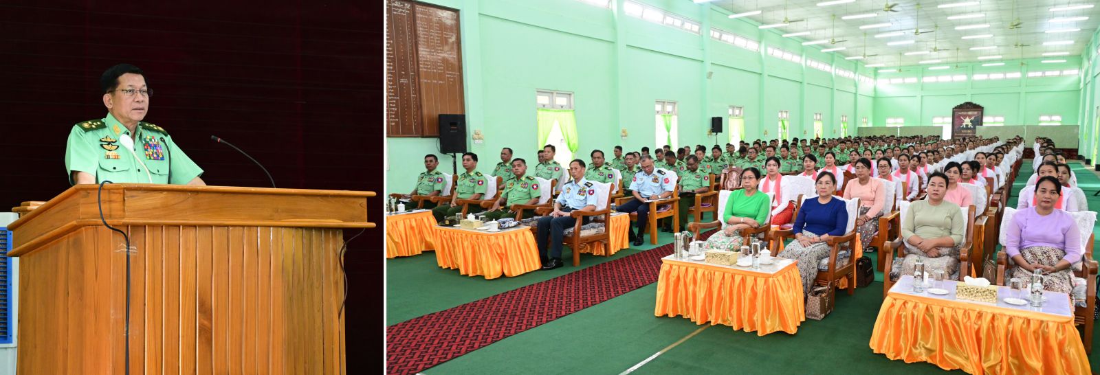 နိုင်ငံတော်လုံခြုံရေးနှင့်အေးချမ်းသာယာရေးကော်မရှင်ဥက္ကဋ္ဌ တပ်မတော်ကာကွယ်ရေးဦးစီးချုပ် ဗိုလ်ချုပ်မှူးကြီး မင်းအောင်လှိုင် မကွေးတပ်နယ်မှ အရာရှိစစ်သည်မိသားစုများအား တွေ့ဆုံ အမှာစကား ပြောကြား