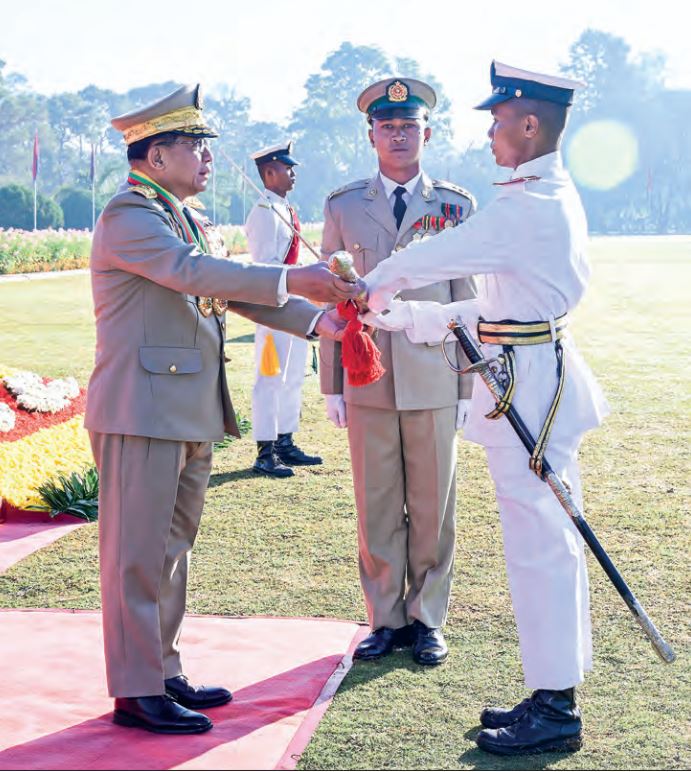 ထို့ပြင် မိမိတို့အားငယ်စဉ်ကလေးဘဝမှစ၍ ကျွေးမွေးပြုစုစောင့်ရှောက်ခဲ့သည့် မိဘများ၏ ကျေးဇူးကိုသိတတ်ရန်၊ ကျေးဇူးဆပ်ရန်လိုအပ်သကဲ့သို့ စည်းကမ်းစနစ်တကျ နေထိုင်လုပ်ကိုင်ဆောင်ရွက်တတ်သည့် အခြေခံကောင်းများ၊ အသိပညာ၊ အတတ်ပညာများရရှိအောင် သင်ကြားလေ့ကျင့်ပေးခဲ့သည့် တပ်မတော်အပေါ်တွင်လည်း ကျေးဇူးသစ္စာစောင့်သိရမည်ဖြစ်ကြောင်း၊ မိမိတို့၏ ရည်မှန်းချက်များ အောင်မြင်ရေး၊ မိသားစုများ၏ ရည်မှန်းချက်များ မပျောက်ပျက်စေရေးအတွက် ဘဝတစ်လျှောက်လုံး ဆက်လက်ကြိုးစားဆောင်ရွက်သွားရမည်ဖြစ်ကြောင်းနှင့် မိမိကိုယ်ကိုယ်ထိန်းထိန်းသိမ်းသိမ်းနေထိုင်ပြီး မိသားစု၊ တပ်မတော်နှင့် နိုင်ငံတော်အတွက် အားကိုးအားထားရသည့် ခေါင်းဆောင်ကောင်းများဖြစ်အောင် စဉ်ဆက်မပြတ် ကြိုးပမ်းဆောင်ရွက်သွားရမည်ဖြစ်ကြောင်းဖြင့် မှာကြားခဲ့ကြောင်း သတင်းရရှိသည်။