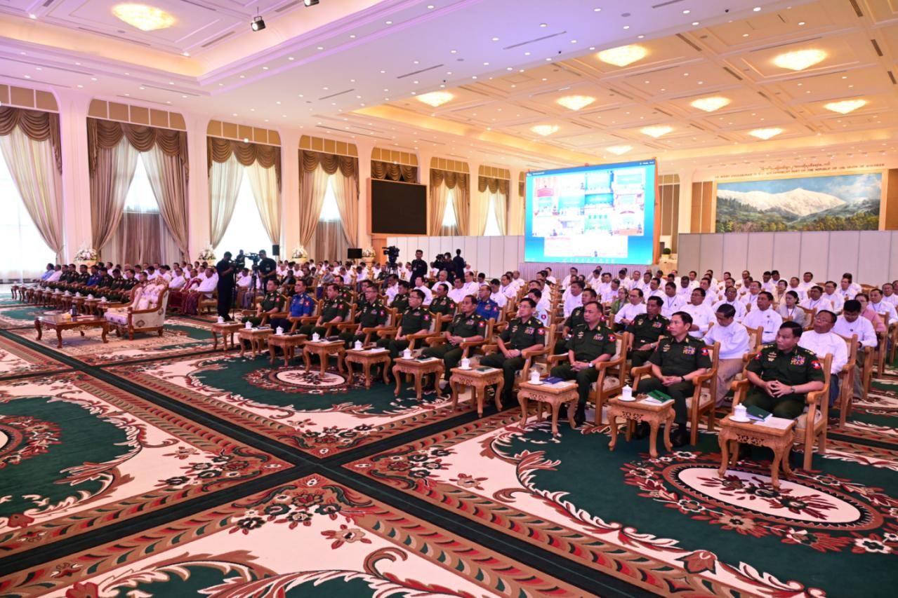 ပြည်ထောင်စုသမ္မတမြန်မာနိုင်ငံတော် နိုင်ငံတော်စီမံအုပ်ချုပ်ရေးကောင်စီ ဂုဏ်ပြုတွေ့ဆုံပွဲ အခမ်းအနားကို ယနေ့နံနက်ပိုင်းတွင် နေပြည်တော်ရှိ ဇေယျာသီရိဗိမာန် ရေခဲတောင်ခန်းမ၌ ကျင်းပပြုလုပ်ရာ နိုင်ငံတော်စီမံအုပ်ချုပ်ရေးကောင်စီဥက္ကဋ္ဌ နိုင်ငံတော်ဝန်ကြီးချုပ် ဗိုလ်ချုပ်မှူးကြီး မင်းအောင်လှိုင် တက်ရောက်အမှာစကားပြောကြားသည်။