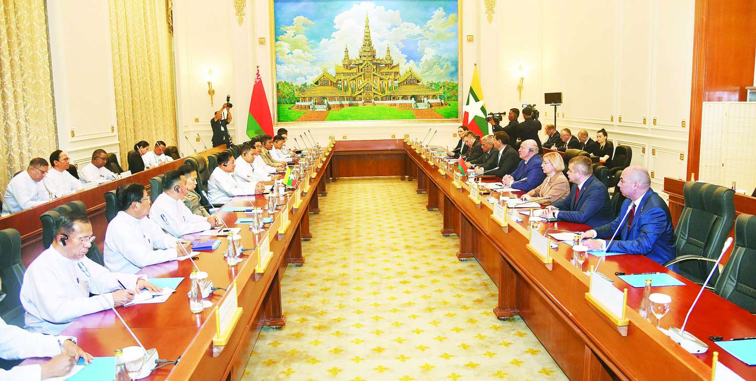 ပြည်ထောင်စုသမ္မတမြန်မာနိုင်ငံတော်နှင့် ဘယ်လာရုစ်သမ္မတနိုင်ငံတို့အကြား နှစ်နိုင်ငံတွေ့ဆုံဆွေးနွေးပွဲကို ယနေ့နံနက်ပိုင်းတွင် သမ္မတအိမ်တော် သံတမန်ဆောင်ဧည့်ခန်းမ၌ ကျင်းပပြုလုပ်သည်။