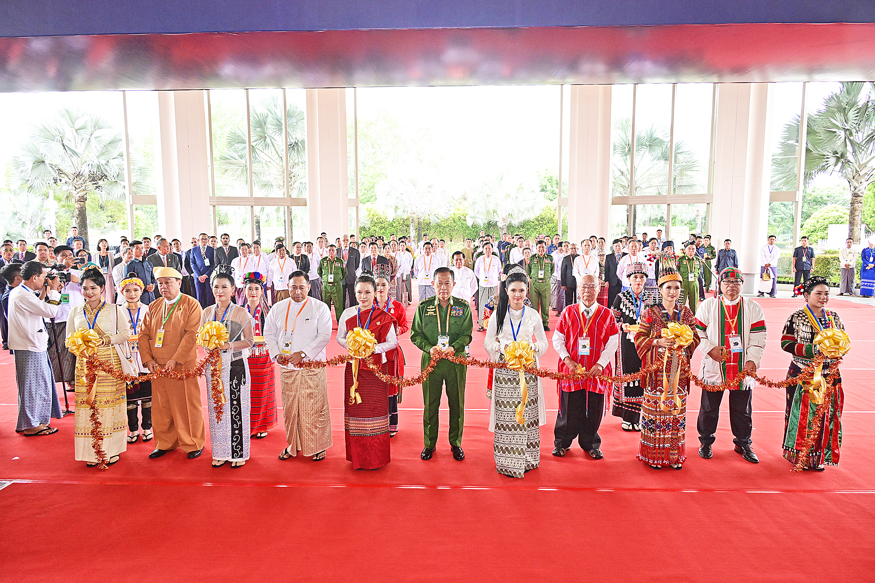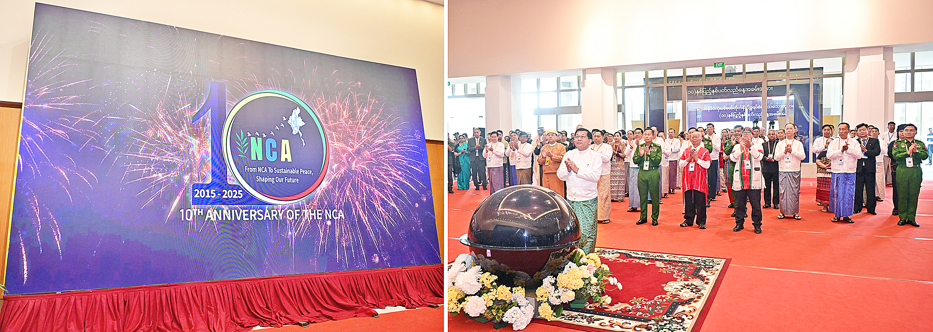 ဦးစွာ နိုင်ငံတော်လုံခြုံရေးနှင့်အေးချမ်းသာယာရေးကော်မရှင် ဒုတိယဥက္ကဋ္ဌ ဒုတိယဗိုလ်ချုပ်မှူးကြီး စိုးဝင်း၊ ကော်မရှင်အဖွဲ့ဝင် အမျိုးသားစည်းလုံးညီညွတ်ရေးနှင့်ငြိမ်းချမ်းရေးဖော်ဆောင်မှုညှိနှိုင်းရေးကော်မတီဥက္ကဋ္ဌ ပြည်ထောင်စုဝန်ကြီး ဒုတိယဗိုလ်ချုပ်ကြီး ရာပြည့်၊ တိုင်းရင်းသားခေါင်းဆောင်များဖြစ်သည့် စောမူတူးစေဖိုး၊ ဦးဇိုဇမ်နှင့် စိုင်းထွန်းကြည် တို့က တိုင်းရင်းသားများနှင့်အတူ တစ်နိုင်ငံလုံးပစ်ခတ်တိုက်ခိုက်မှုရပ်စဲရေးသဘောတူစာချုပ် (NCA) (၁၀)နှစ်ပြည့် နှစ်ပတ်လည်နေ့ အခမ်းအနားကို ဖဲကြိုးဖြတ်ဖွင့်လှစ်ပေးကြသည်။
