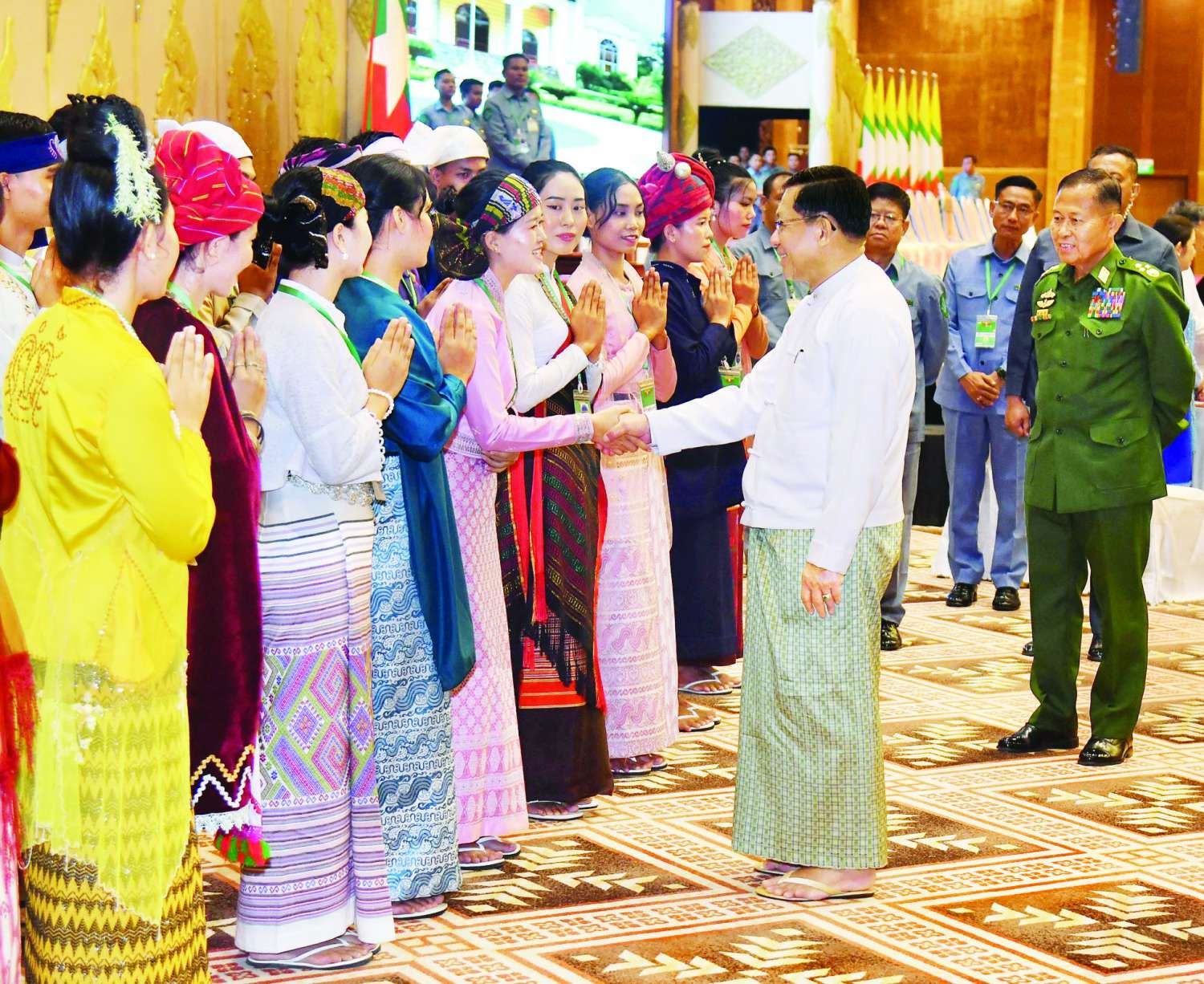 တွေ့ဆုံပွဲအခမ်းအနားသို့ ကော်မရှင်ဒုတိယဥက္ကဋ္ဌ ဒုတိယဗိုလ်ချုပ်မှူးကြီး စိုးဝင်း၊ ကော်မရှင်အဖွဲ့ဝင် နိုင်ငံတော်ဝန်ကြီးချုပ် ဦးညိုစော၊ ကော်မရှင်အဖွဲ့ဝင် အမှုဆောင်ချုပ် ဦးအောင်လင်းဒွေး၊ ကော်မရှင်အတွင်းရေးမှူး တွဲဖက်အမှုဆောင်ချုပ် ဗိုလ်ချုပ်ကြီး ရဲဝင်းဦး၊ ကော်မရှင်အဖွဲ့ဝင်များ၊ ပြည်ထောင်စုဝန်ကြီးများနှင့် ပြည်ထောင်စုအဆင့်ပုဂ္ဂိုလ်များ၊ နေပြည်တော်ကောင်စီဥက္ကဋ္ဌ၊ ကာကွယ်ရေးဦးစီးချုပ်ရုံးမှ အဆင့်မြင့်တပ်မတော်အရာရှိကြီးများ၊ နေပြည်တော်တိုင်းစစ်ဌာနချုပ်တိုင်းမှူး၊ ဒုတိယဝန်ကြီးများနှင့် တာဝန်ရှိသူများ၊ ပြည်ထောင်စုတိုင်းရင်းသားလူမျိုးများဖွံ့ဖြိုးရေးတက္ကသိုလ် ပါမောက္ခချုပ်နှင့် ဆရာ၊ ဆရာမများ၊ ကျောင်းသား၊ ကျောင်းသူများ တက်ရောက်ကြသည်။