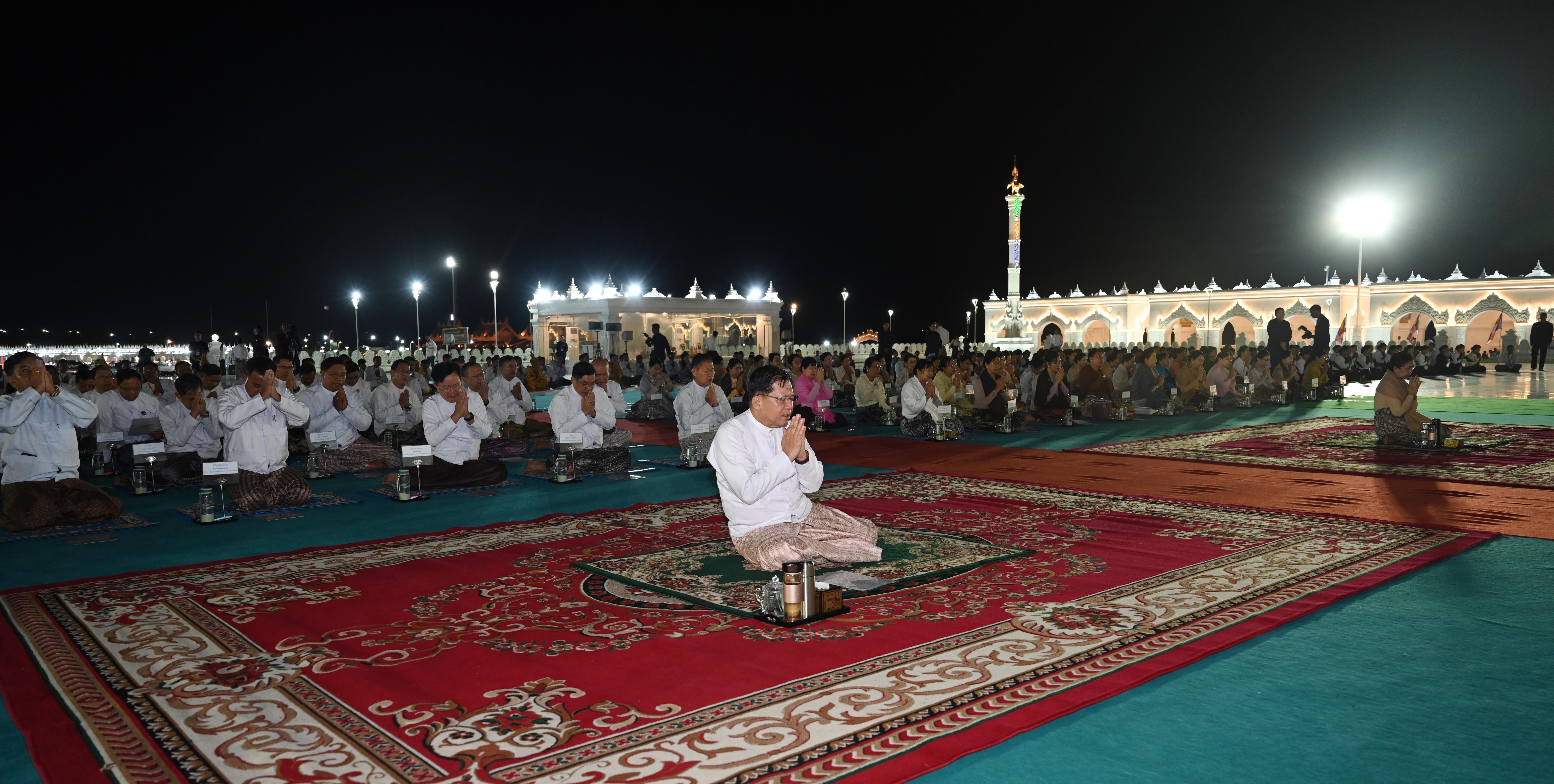 ထိုသို့ ဆက်ကပ်ပူဇော်နေချိန်တွင် နိုင်ငံတော်ယာယီသမ္မတ နိုင်ငံတော်လုံခြုံရေးနှင့်အေးချမ်းသာယာရေးကော်မရှင်ဥက္ကဋ္ဌနှင့် ဇနီး ဦးဆောင်သော ဘုရားဒါယကာ၊ ဒါယိကာမများက ဘုရားဂုဏ်တော်၊ ပဋ္ဌာန်းပစ္စယုဒ္ဒေသပါဠိ၊ ပရိတ်၊ မေတ္တာပို့လင်္ကာများကို ရွတ်ဆိုပွားများ ပူဇော်ကြသည်။