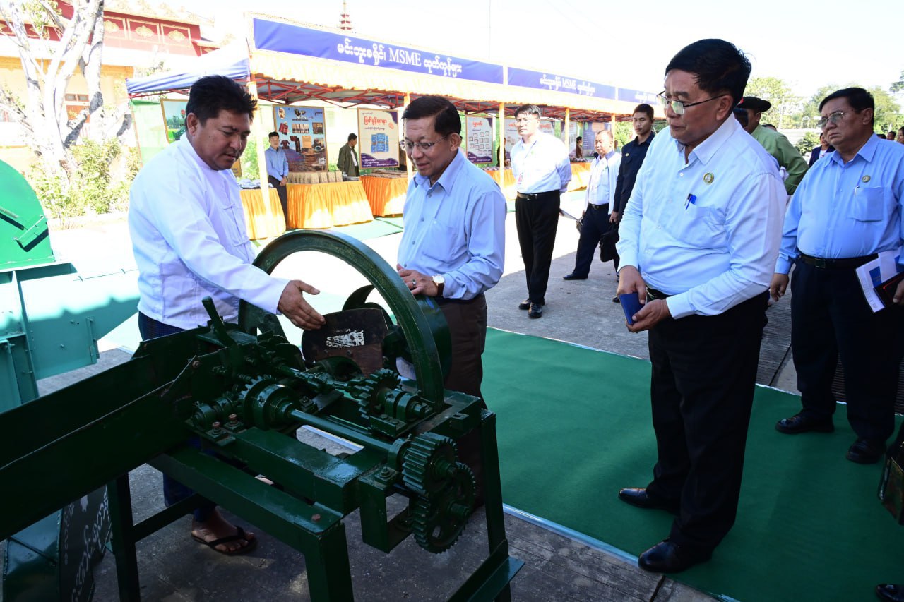 ပြည်ထောင်စုသမ္မတမြန်မာနိုင်ငံတော်ယာယီသမ္မတ နိုင်ငံတော်လုံခြုံရေးနှင့်အေးချမ်းသာယာရေးကော်မရှင်ဥက္ကဋ္ဌ ဗိုလ်ချုပ်မှူးကြီး မင်းအောင်လှိုင် မင်းဘူးမြို့ရှိ ဌာနဆိုင်ရာ တာဝန်ရှိသူများ မြို့မိ မြို့ဖများ၊ အသေးစား၊ အငယ်စားနှင့် အလတ်စား (MSME) စီးပွားရေးလုပ်ငန်းရှင်များနှင့် တွေ့ဆုံ၍ ဒေသဖွံ့ဖြိုးတိုးတက်ရေးဆိုင်ရာများ ဆွေးနွေးပြောကြား